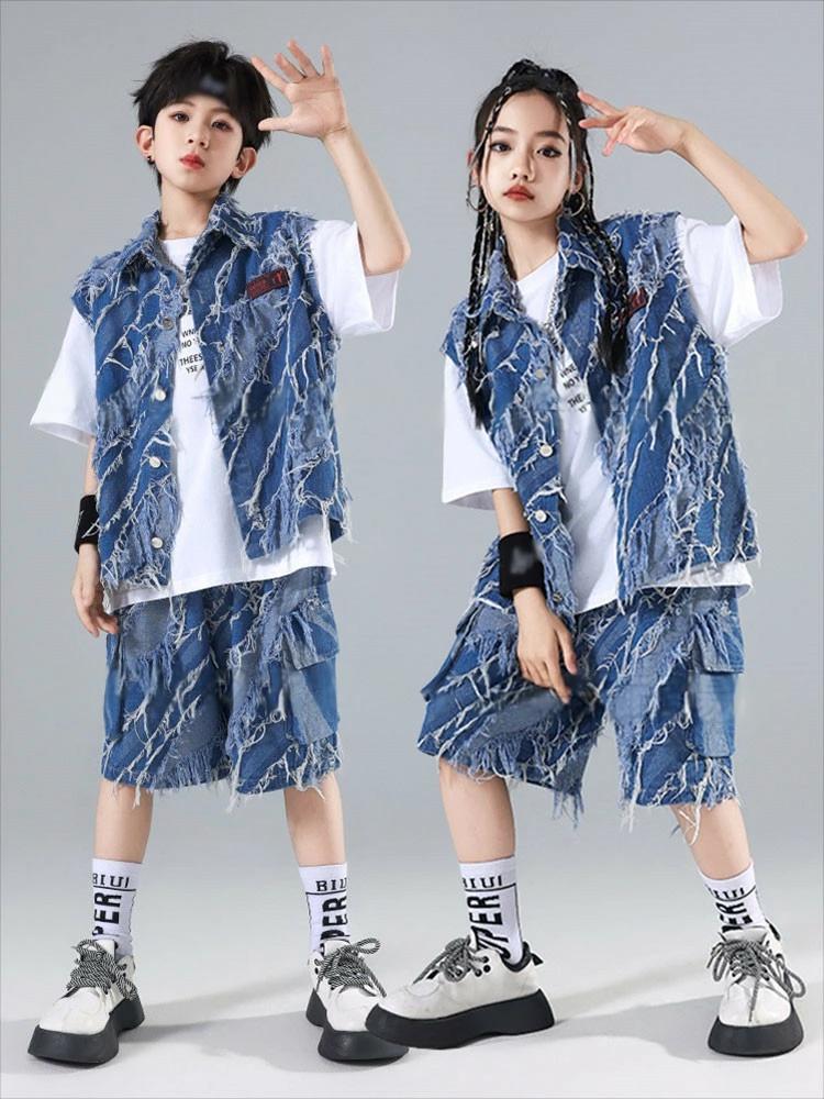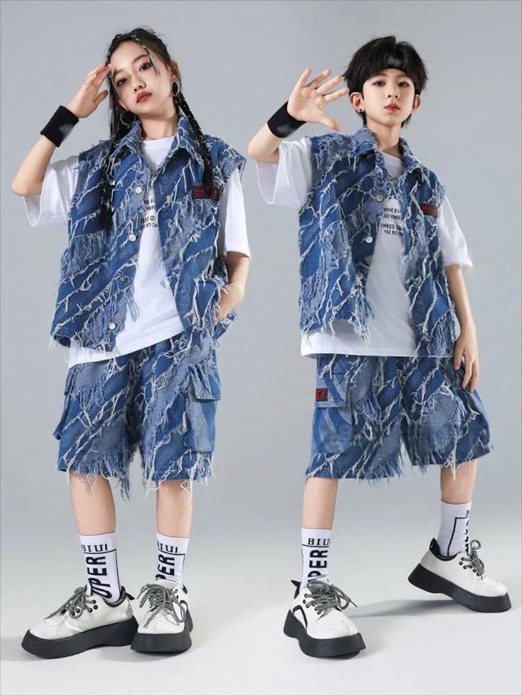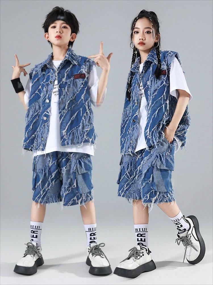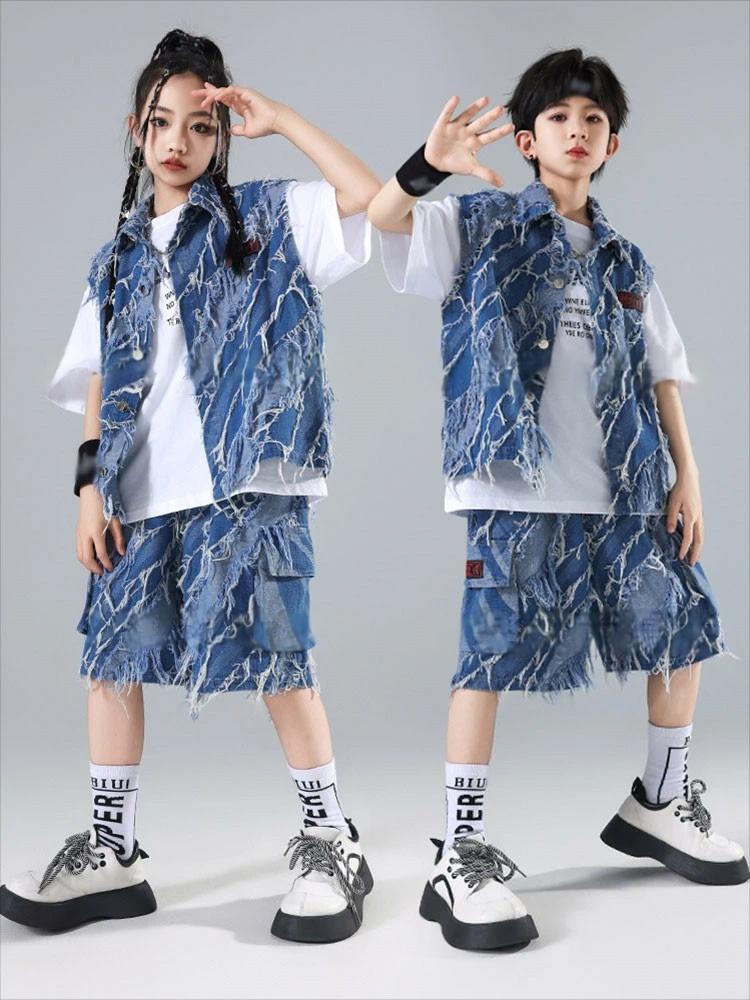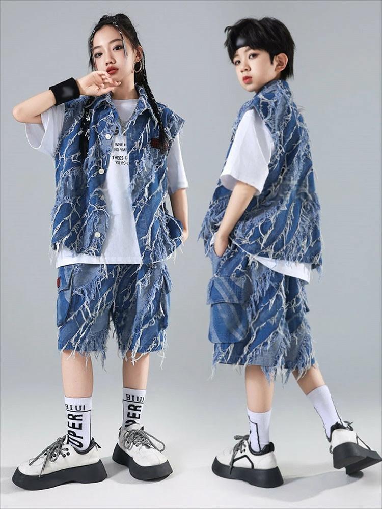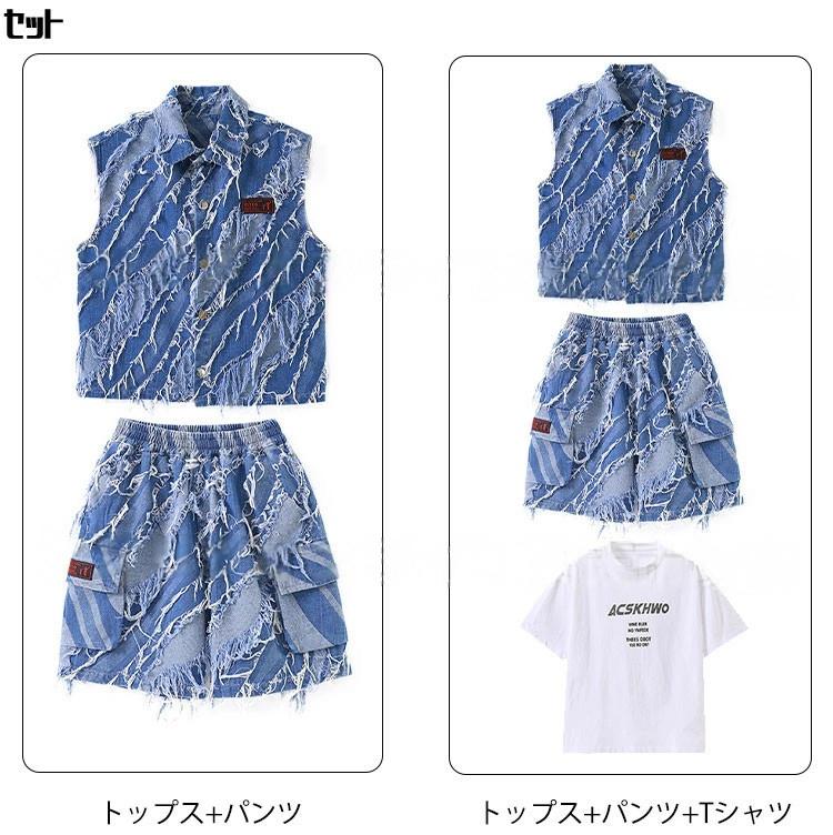 デニム ブルー ベスト カーゴパンツ