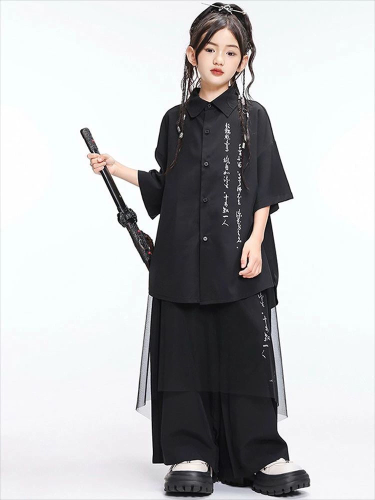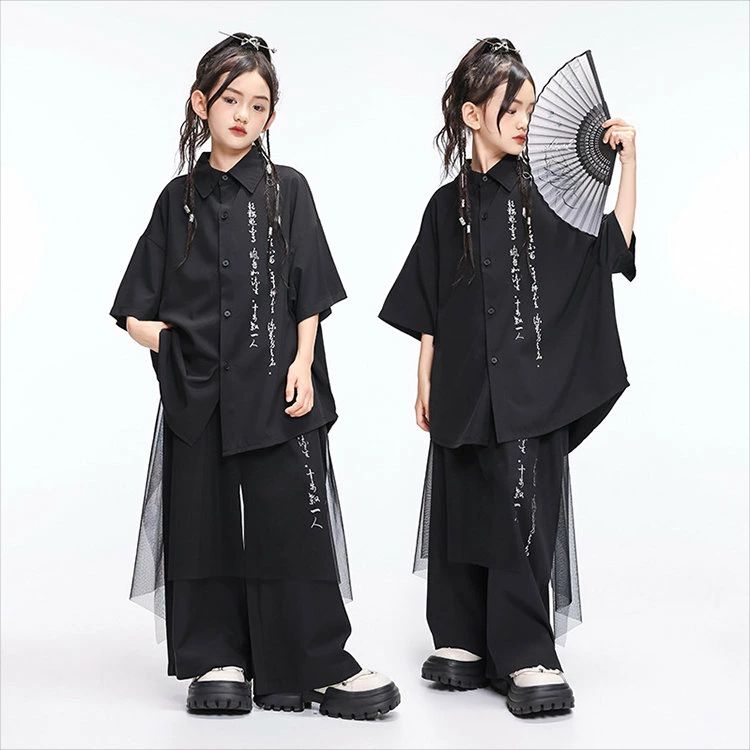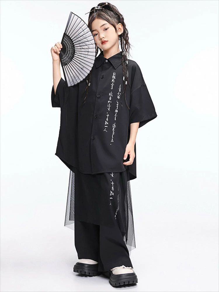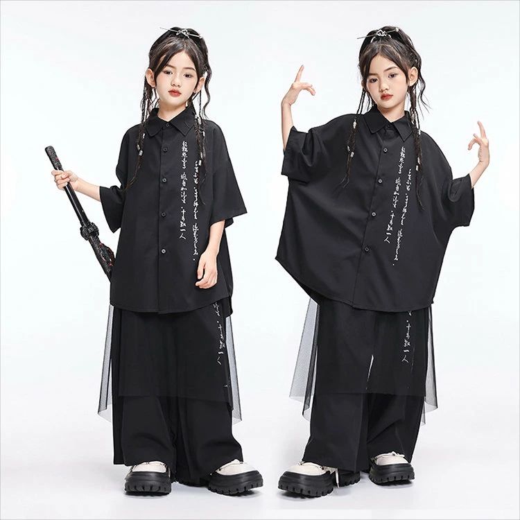 刺繍 黒 竜柄 キッズ ダンス衣装 セ