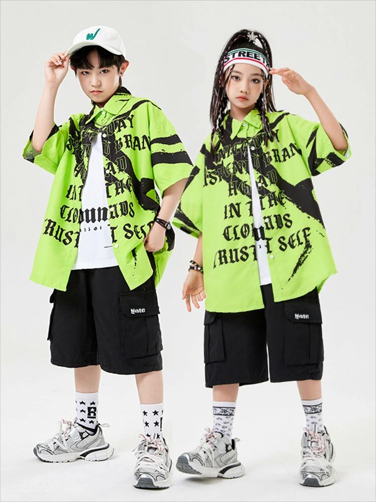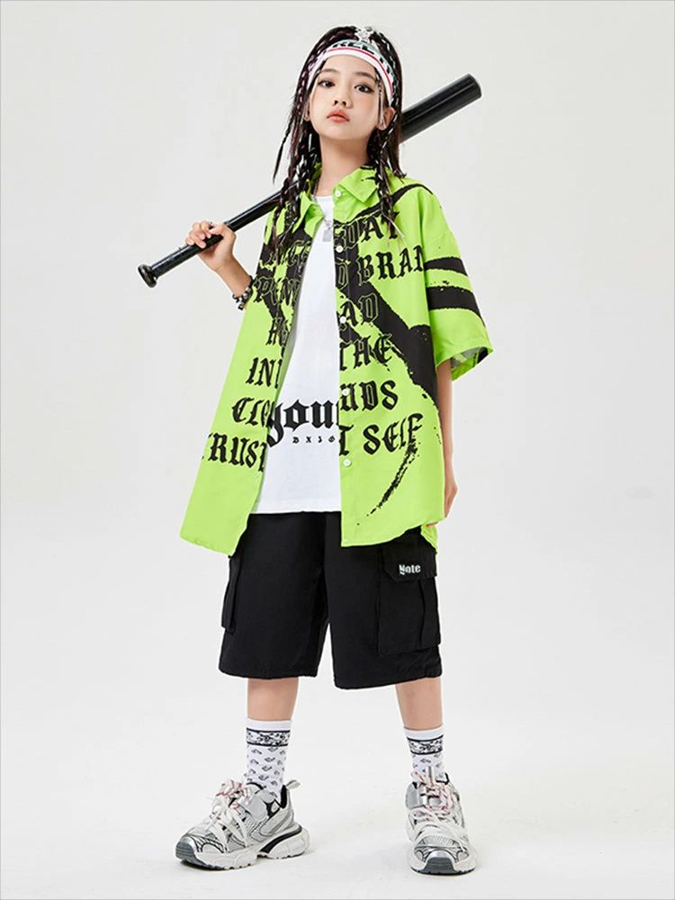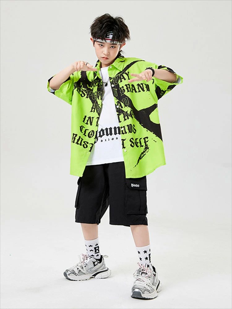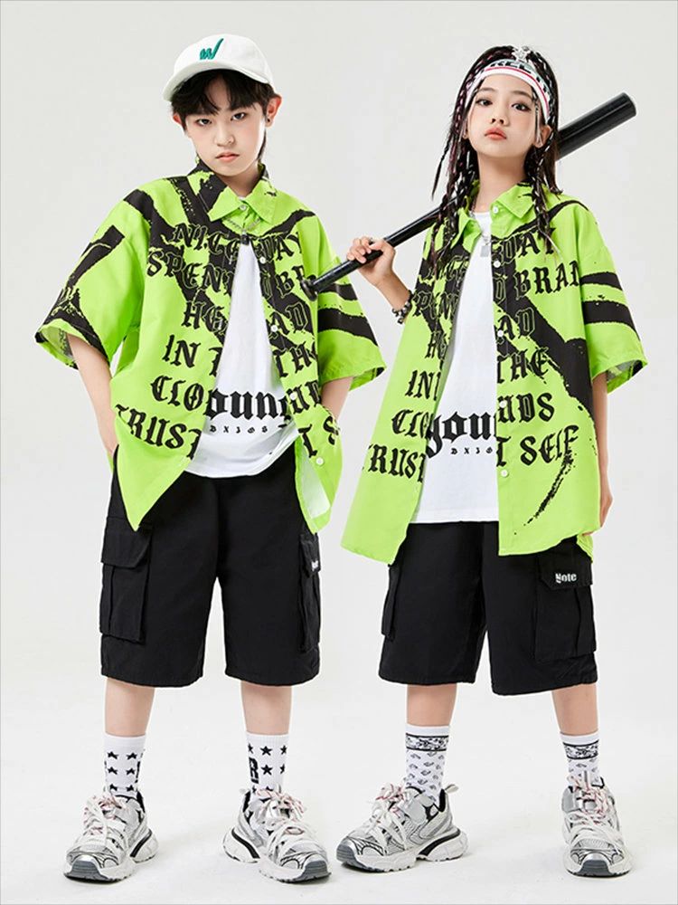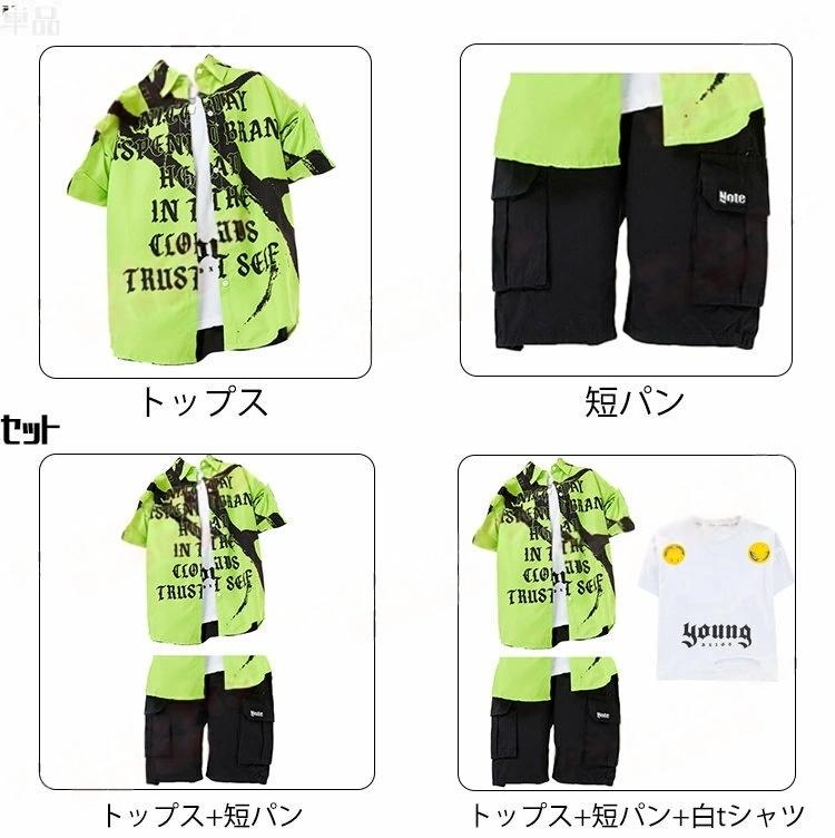 緑色 総柄 キッズ ダンス衣装 セット