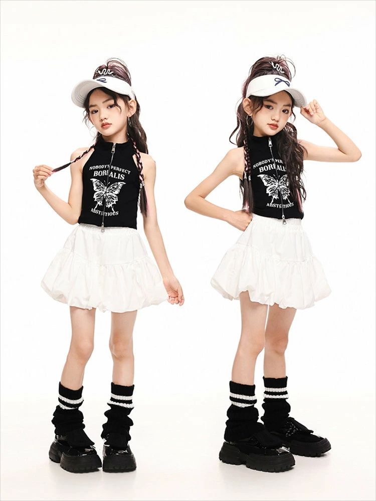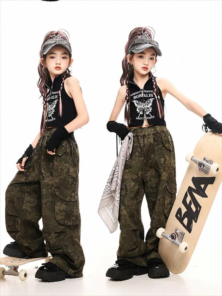 商品内容: トップスのみ トップス+迷彩柄カーゴパンツ トップス+PU黒色スカート トップス+白色スカート