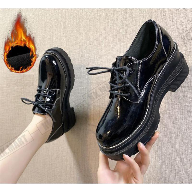 ローファー レディース 革靴 厚底シューズ ミドルヒール 裏起毛 モカシン 太めヒール 靴ひも 黒 通勤 通学 コンフォート 秋冬 オシャレ