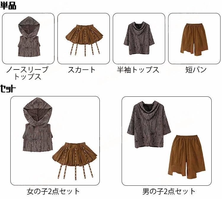 商品内容: 女の子2点セット ノースリーブトップのみ スカートのみ 男の子2点セット 半袖Tシャツのみ 短パンのみ