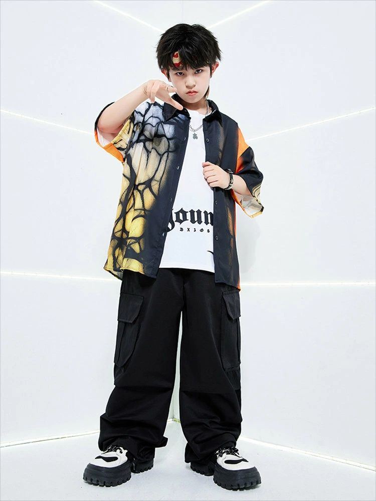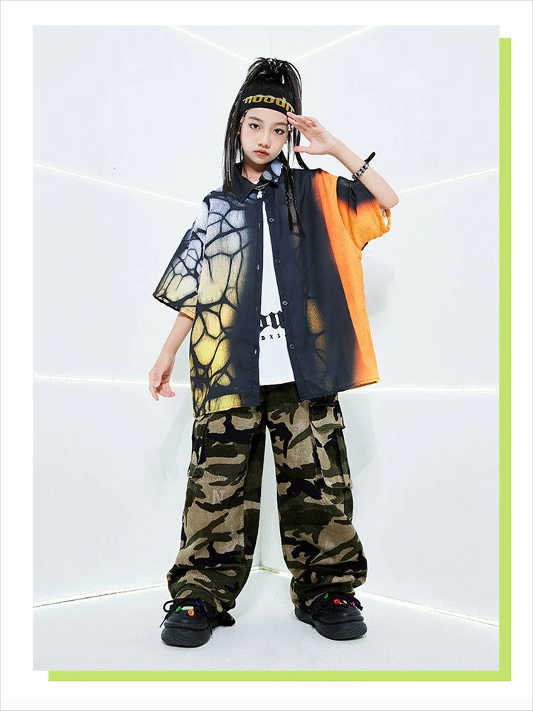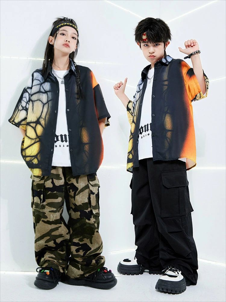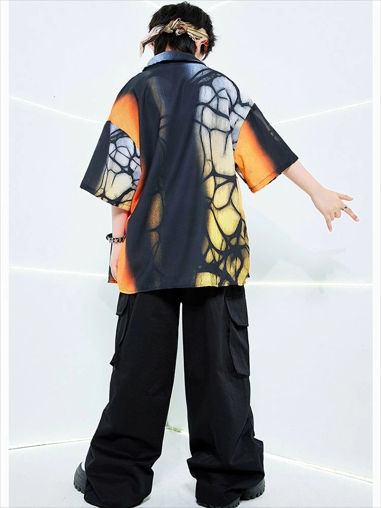 オレンジ 柄シャツ 総柄 キッズ ダン