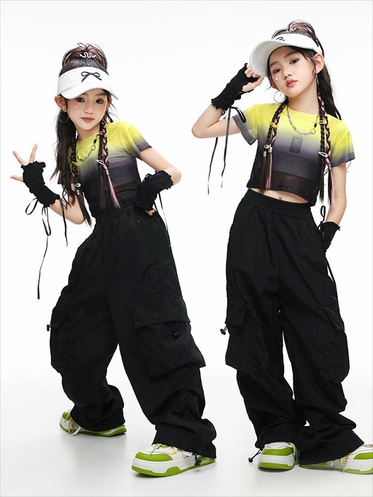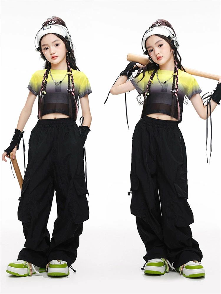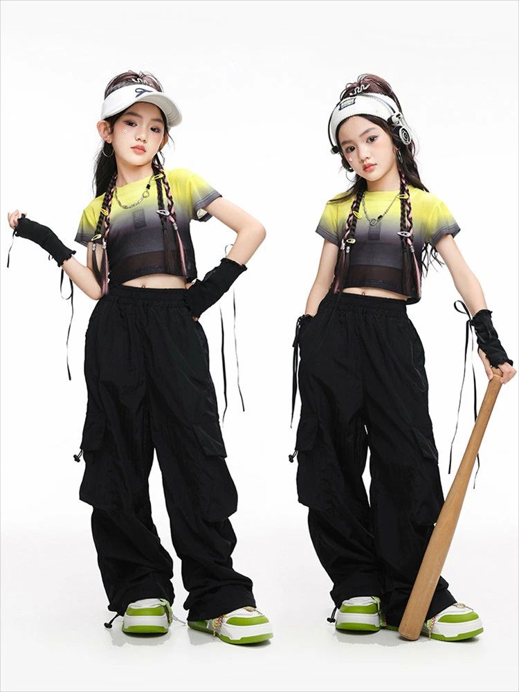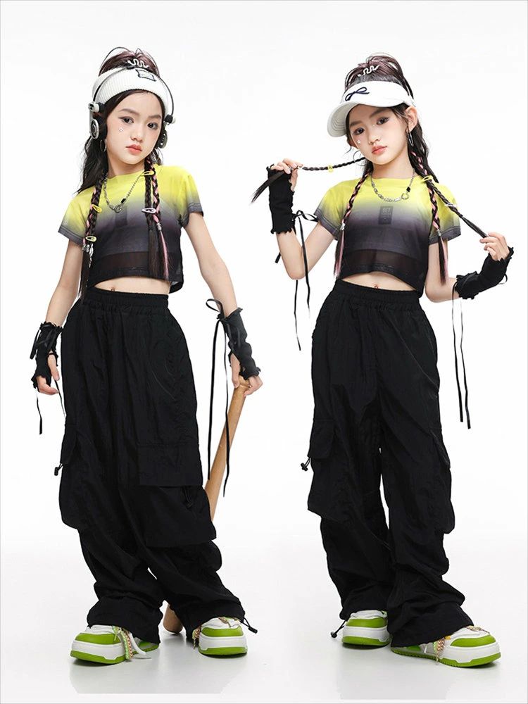 黄色 半透明 ショート丈トップ キッズ