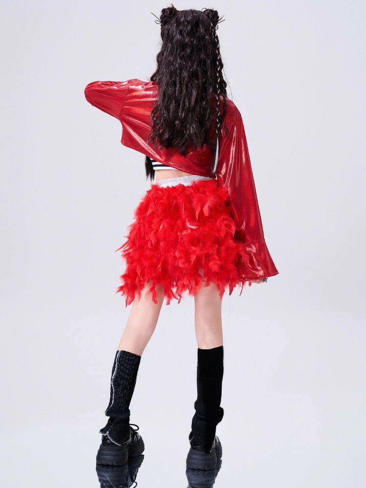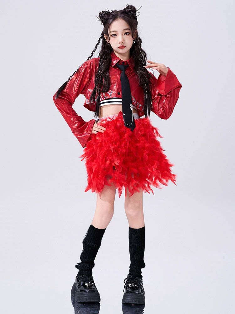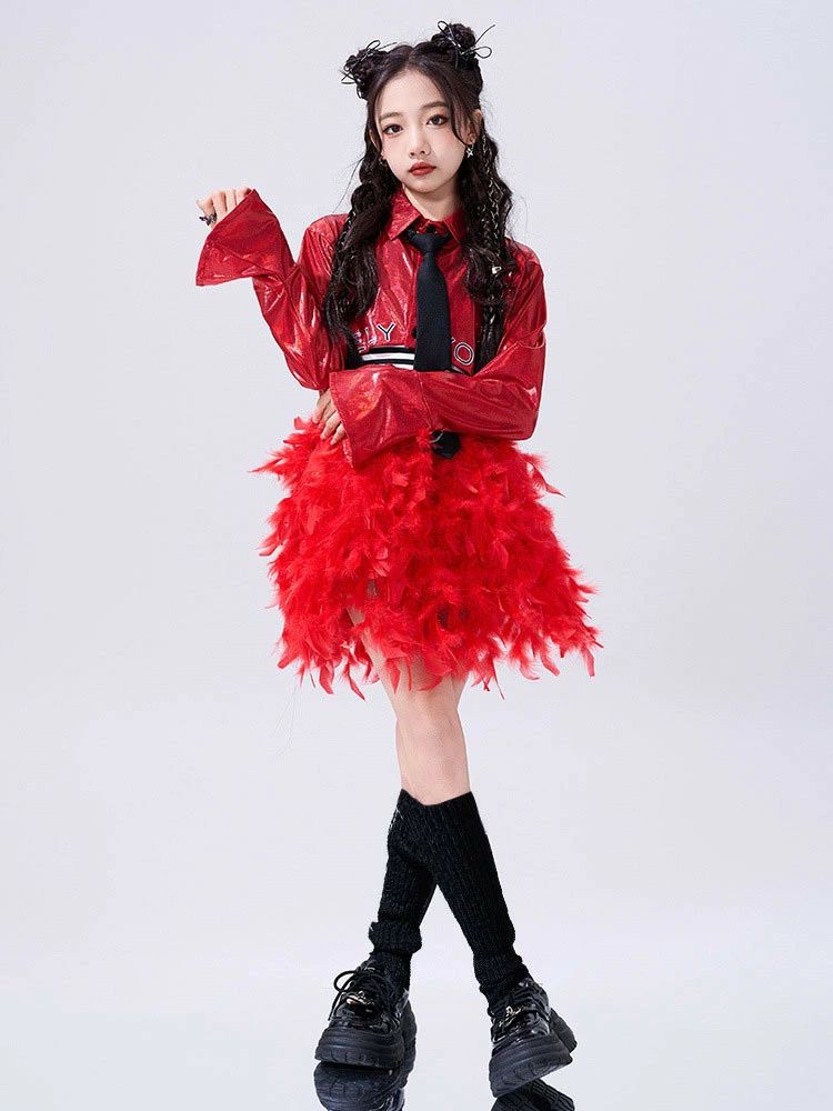 韓国 jazz 赤 トップス スカート
