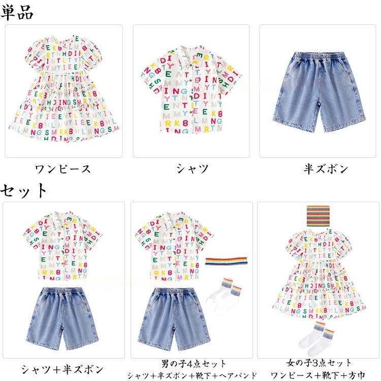商品内容: ワンピース シャツ 半ズボン シャツ+半ズボン 女の子3点セット 男の子4点セット