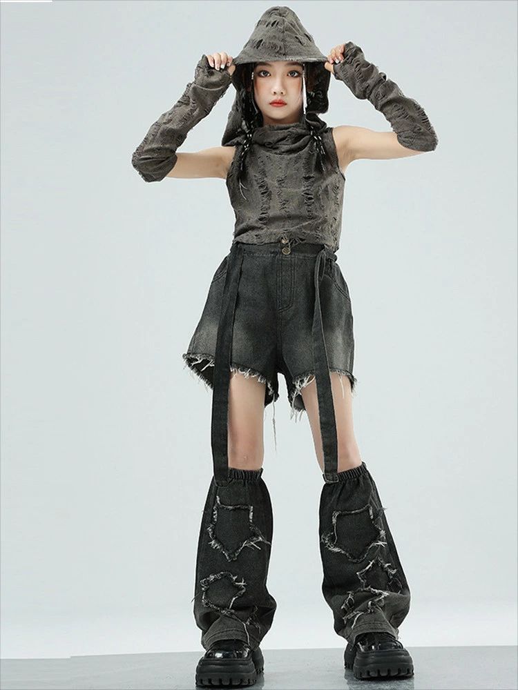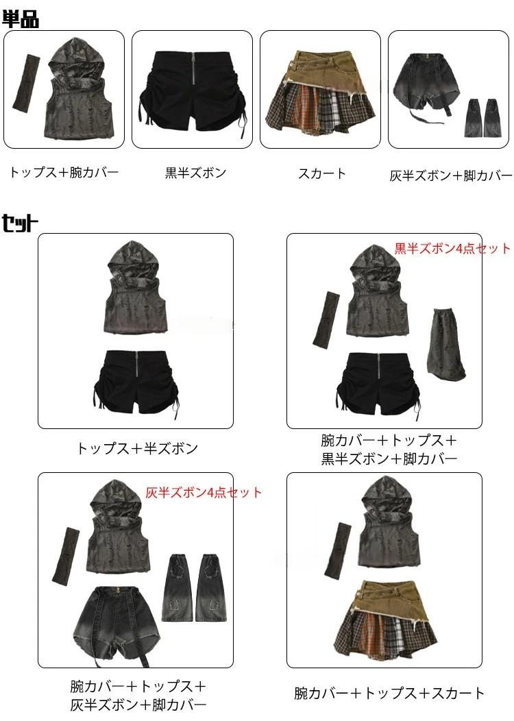 商品内容: トップス+腕カバー 黒半ズボン スカート 灰半ズボン+脚カバー トップス+黒半ズボン 4点セット(黒半ズボン) 4点セット(灰半ズボン) トップス+腕カバー+スカート