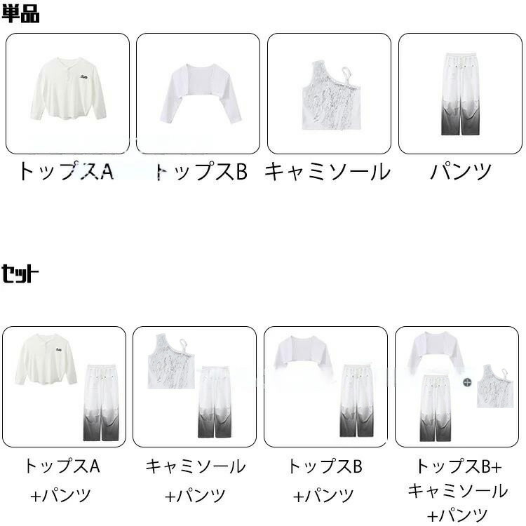 商品内容: トップスAのみ トップスBのみ キャミソールのみ パンツのみ トップスA+パンツ キャミソール+パンツ トップスB+パンツ トップスB+キャミソール+パンツ