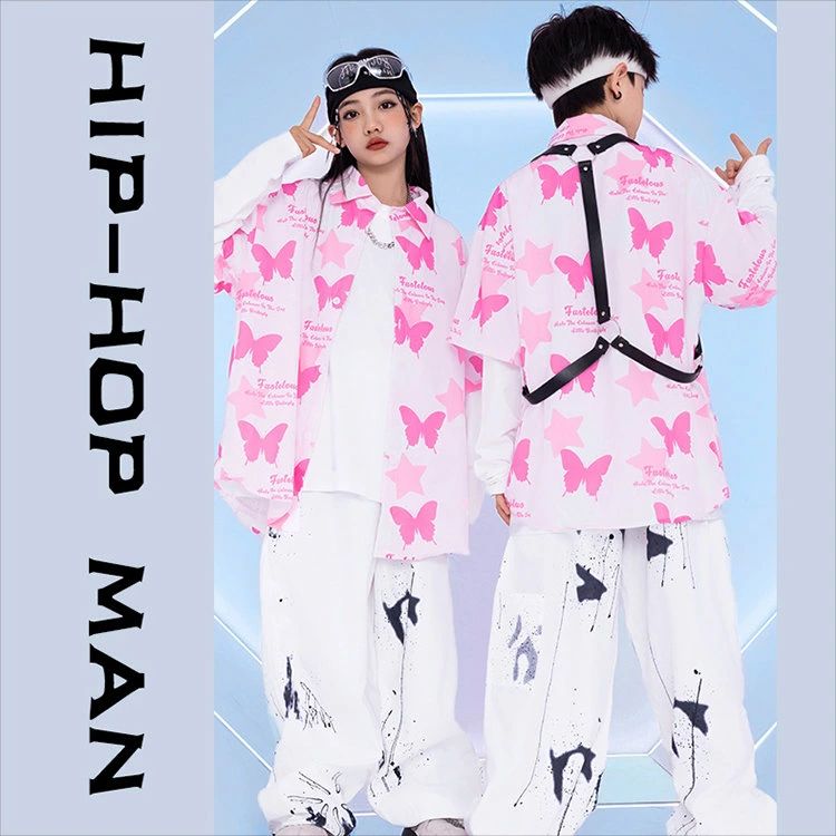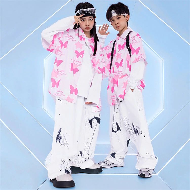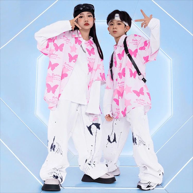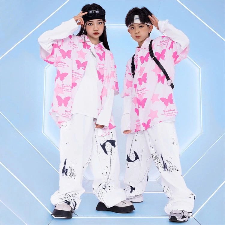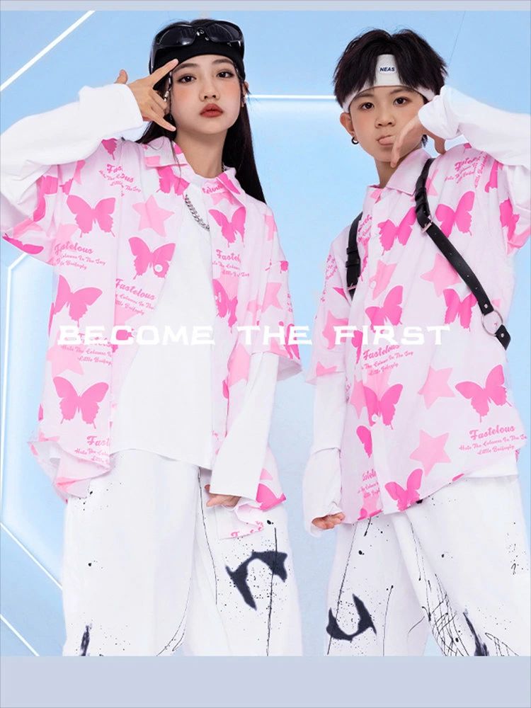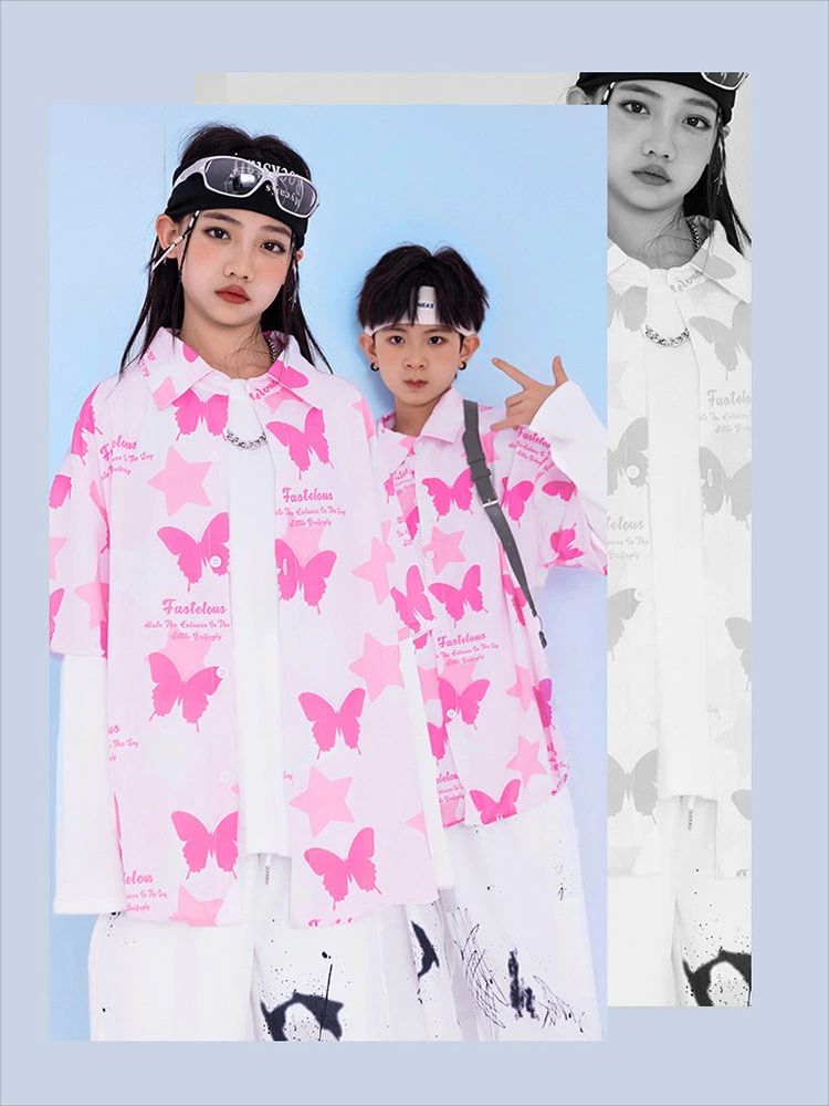 ピンク 蝶柄 総柄 柄シャツ キッズ