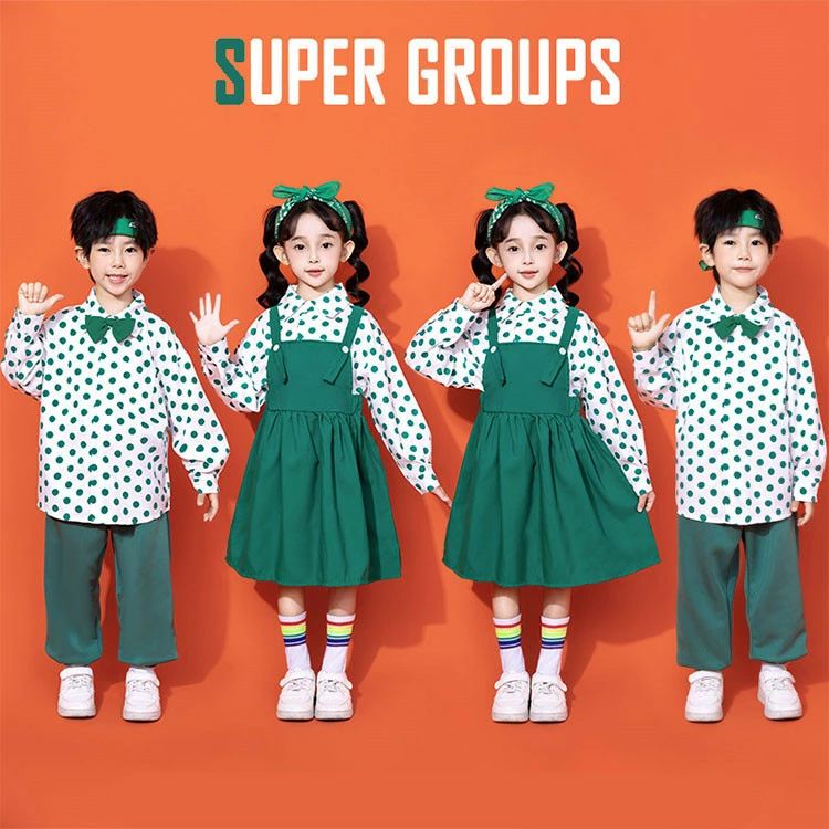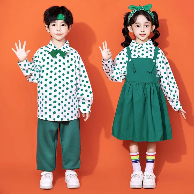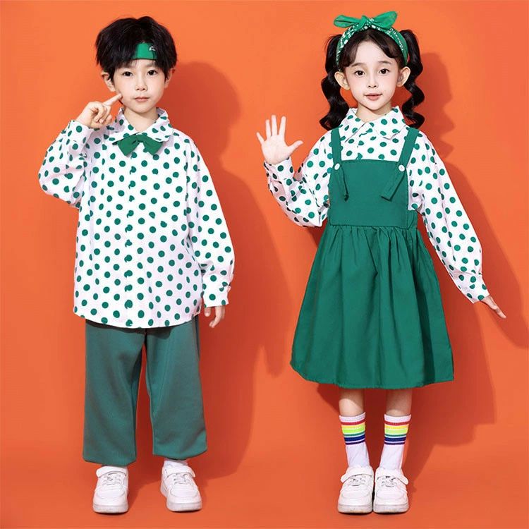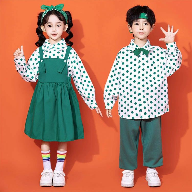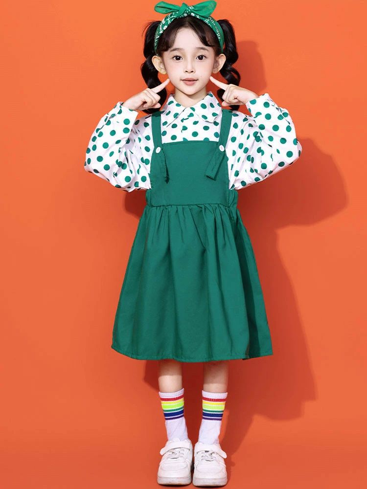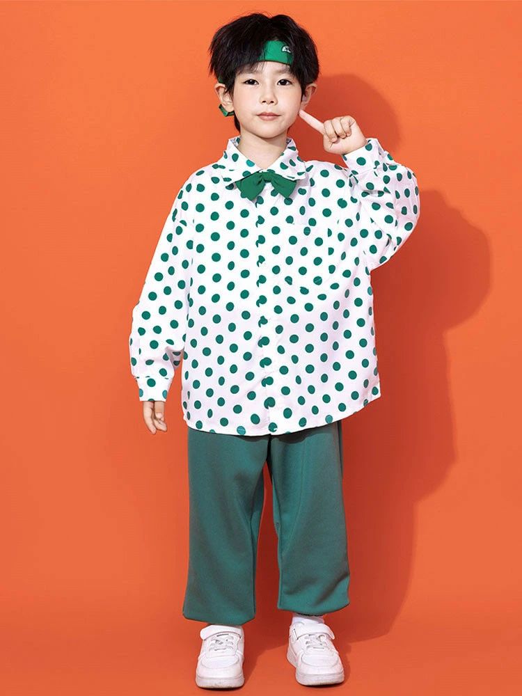 水玉柄 シャツ 総柄 緑 ウェストパン
