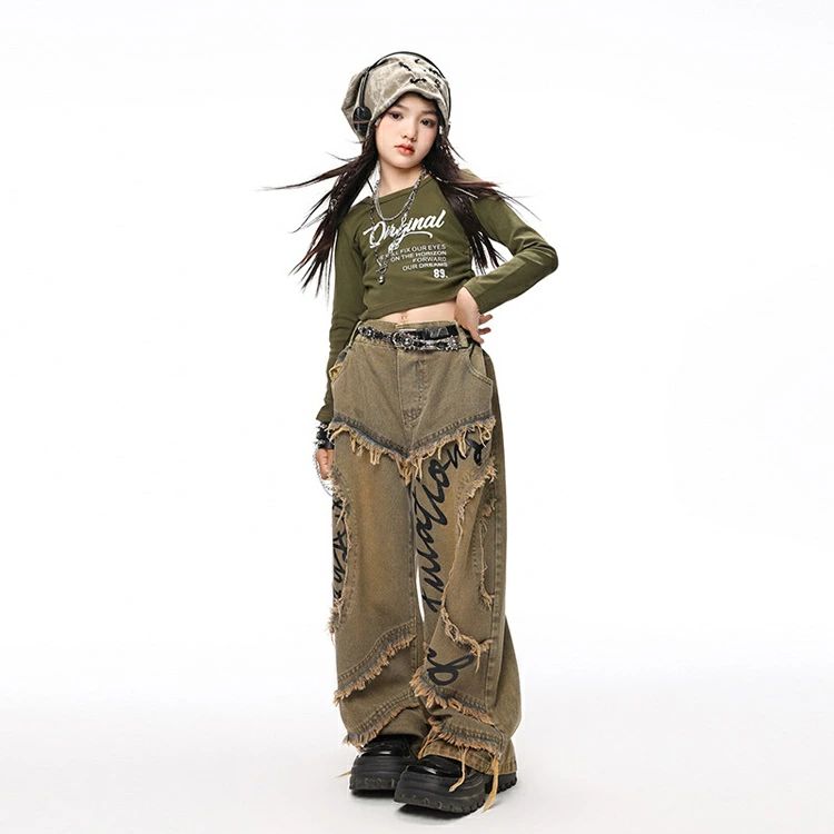 デニムパンツ ビジュー付き