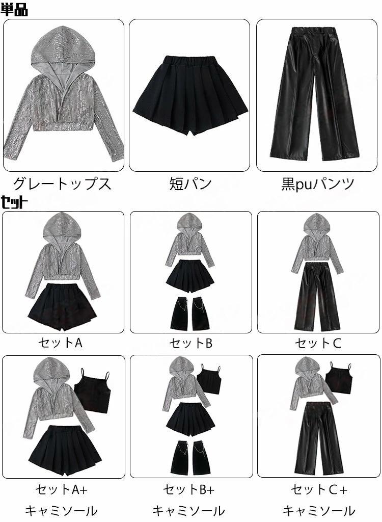 商品内容: グレートップスのみ 短パンのみ 黒色PUパンツ セットA セットB セットC セットA+キャミソール セットB+キャミソール セットC+キャミソール