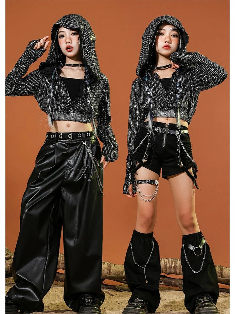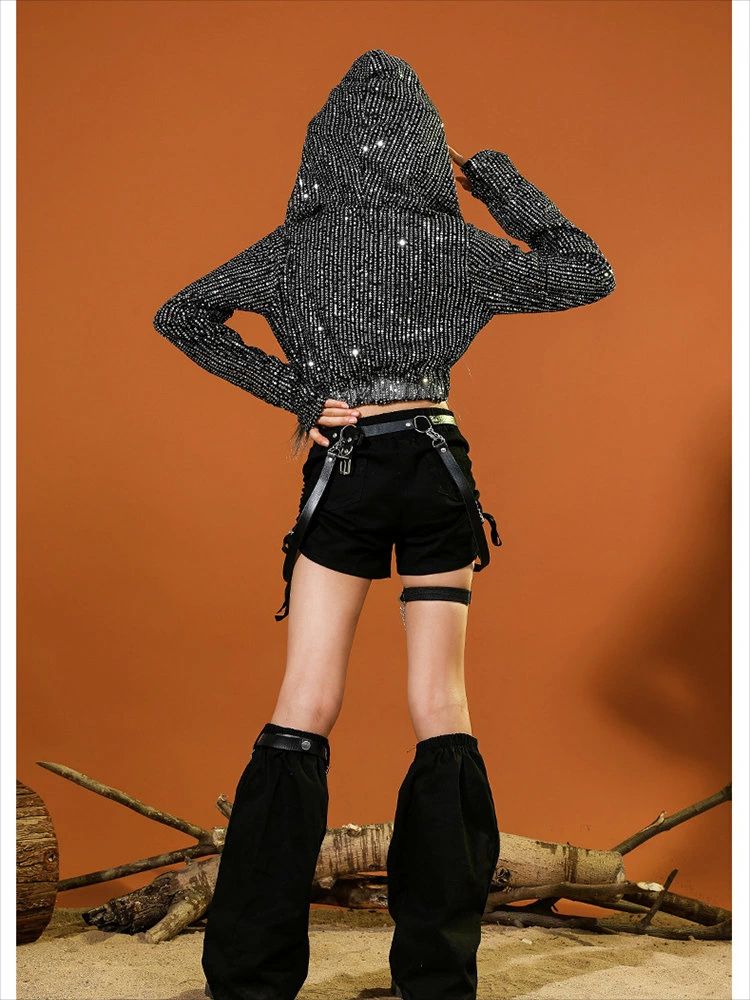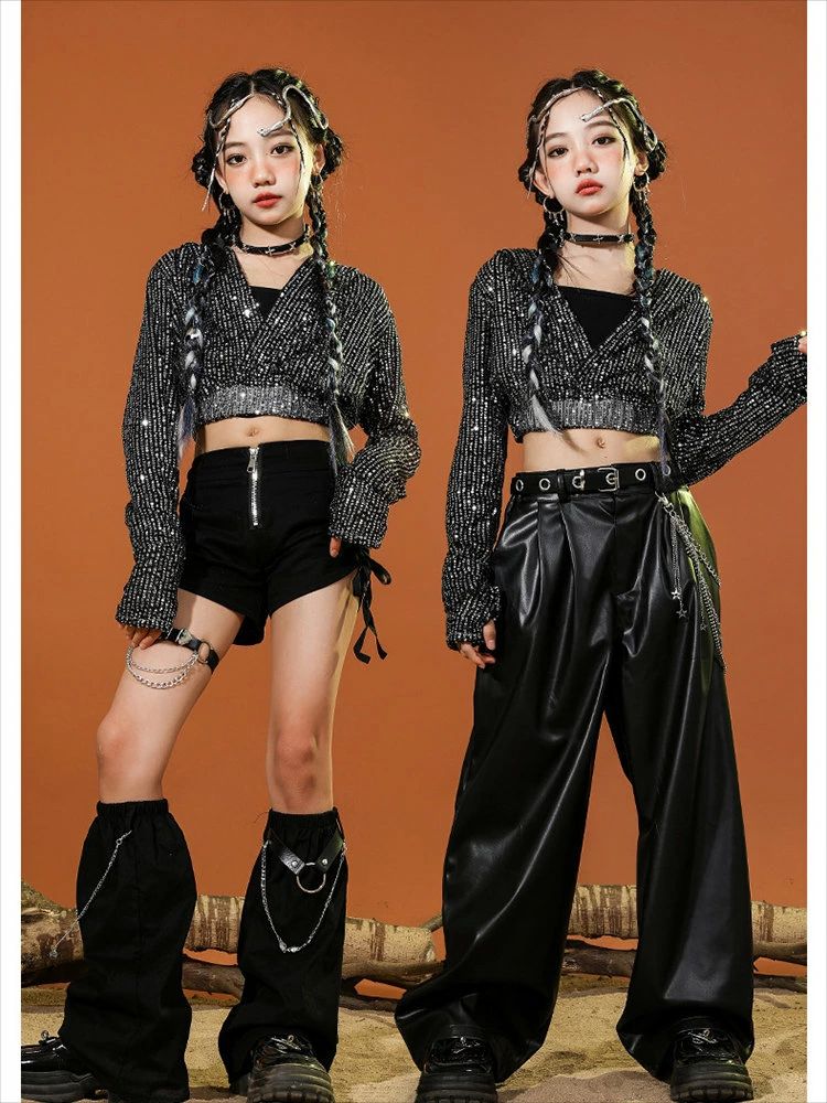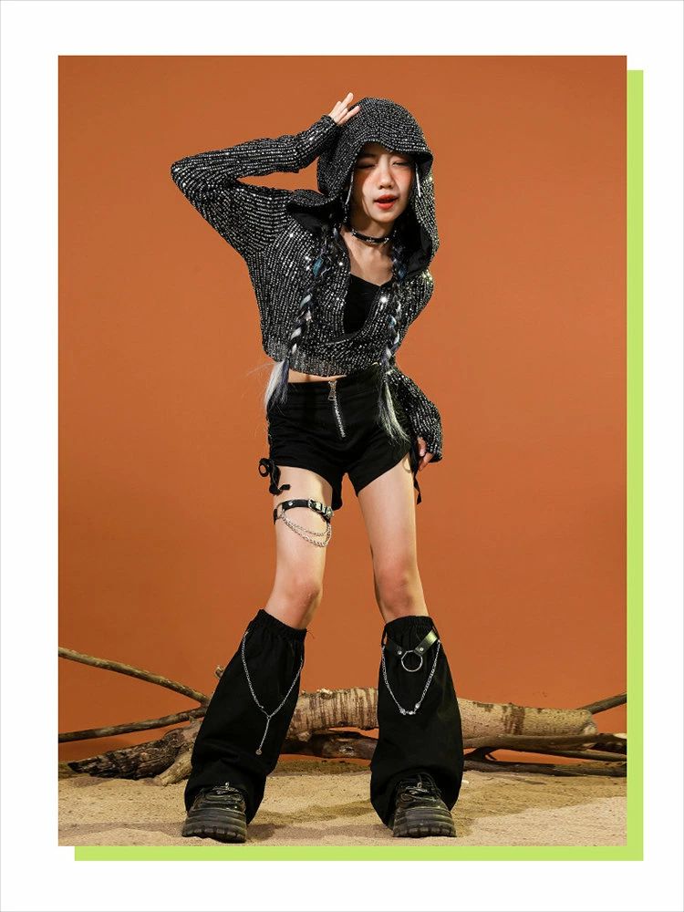 黒色 キッズ ダンス衣装 セットアップ