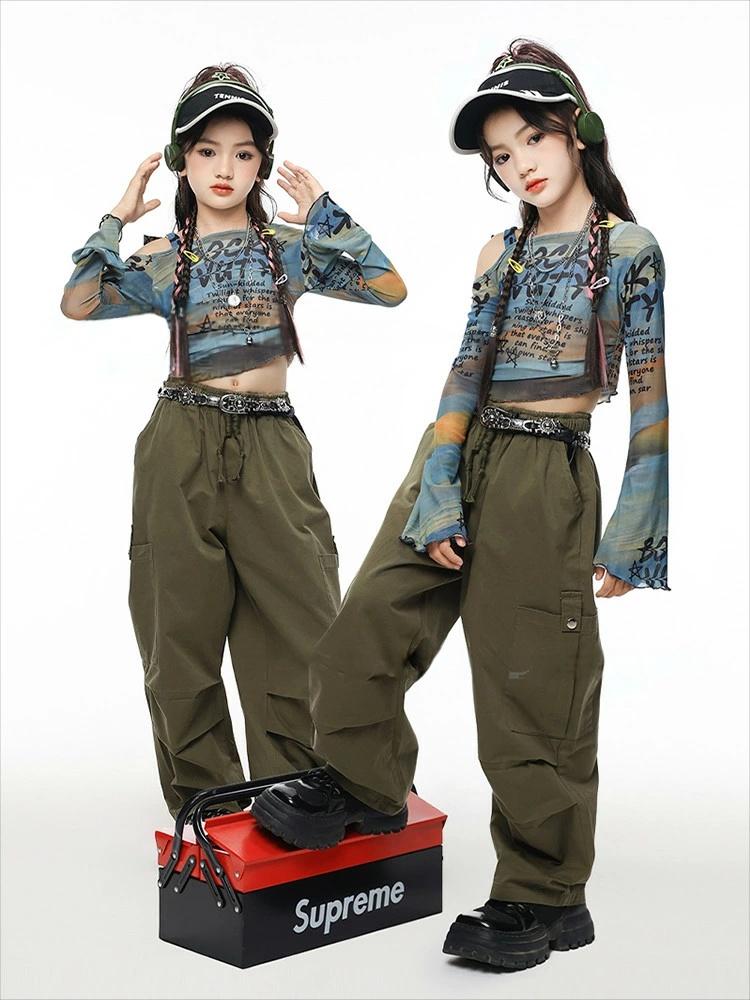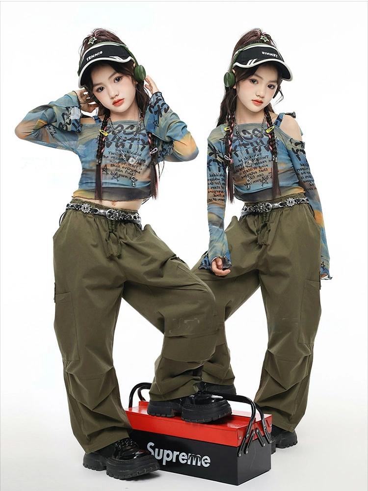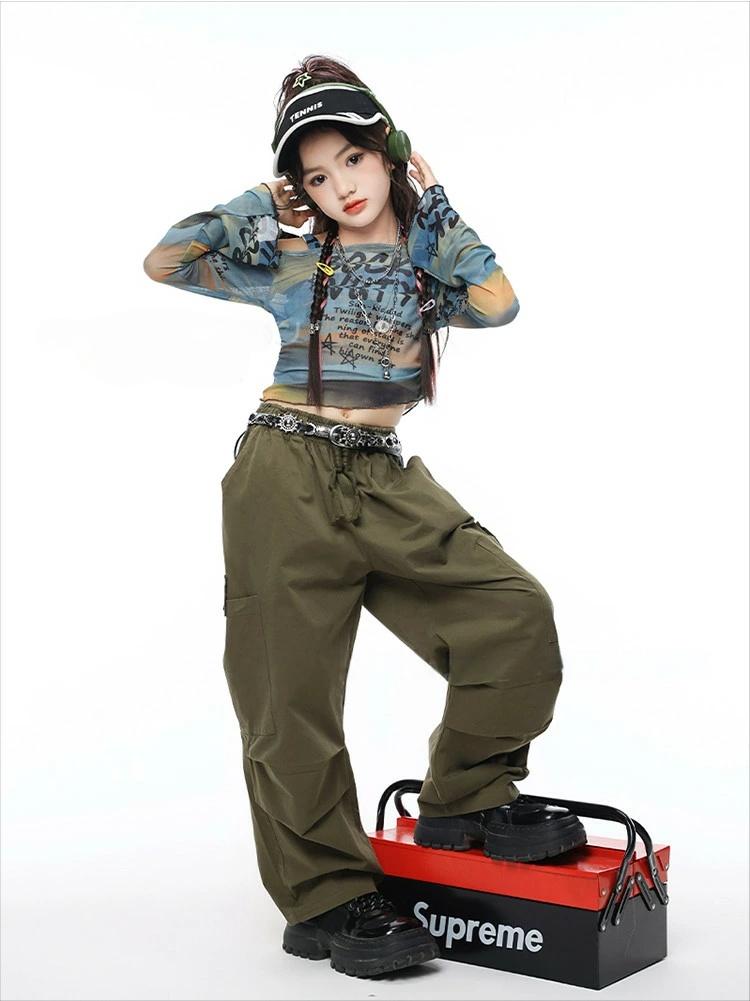 青 カーキグリーン へそ出し キッズ