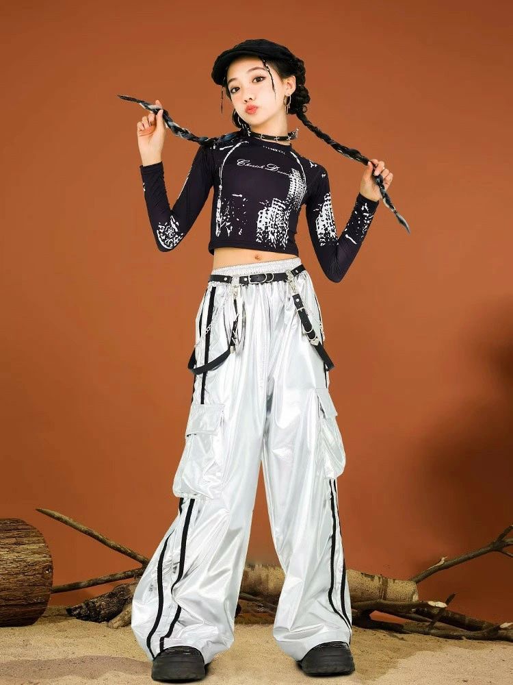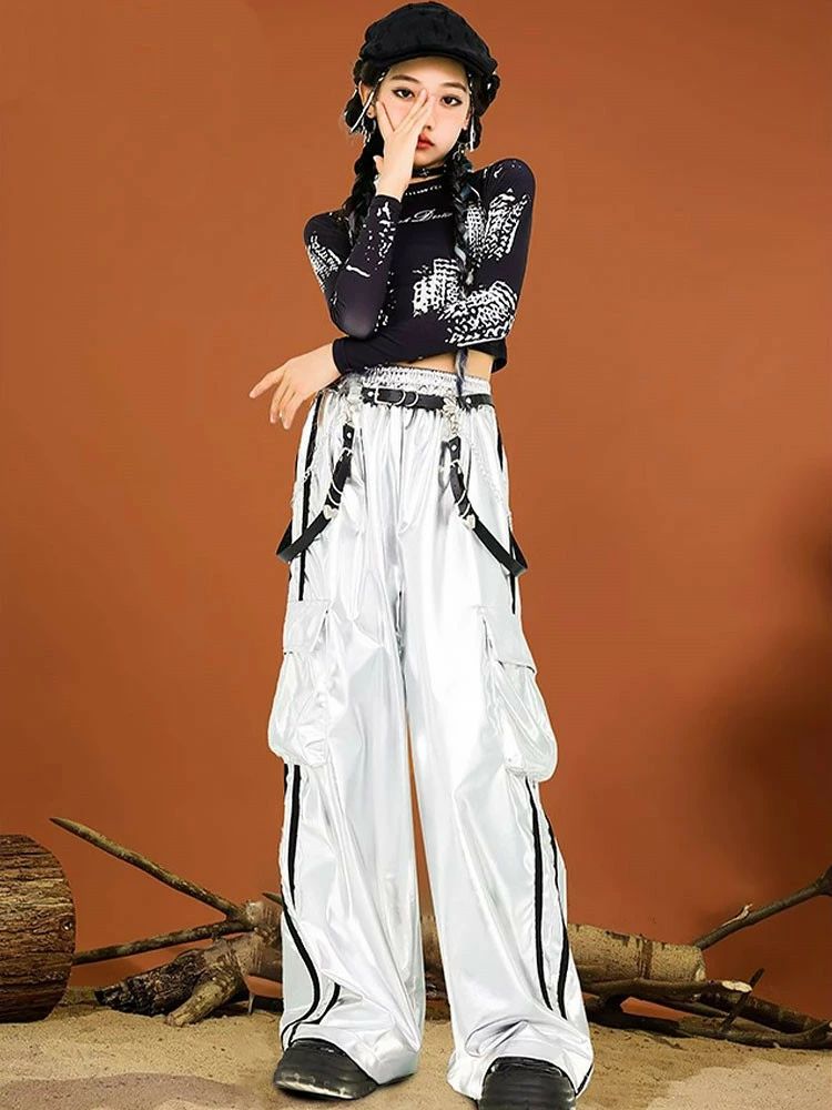 商品内容: トップス 銀パンツ 黒パンツ トップス+銀パンツ トップス+黒パンツ トップス+銀パンツ+ベルト トップス+黒パンツ+ベルト