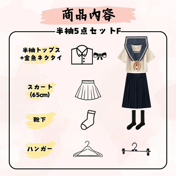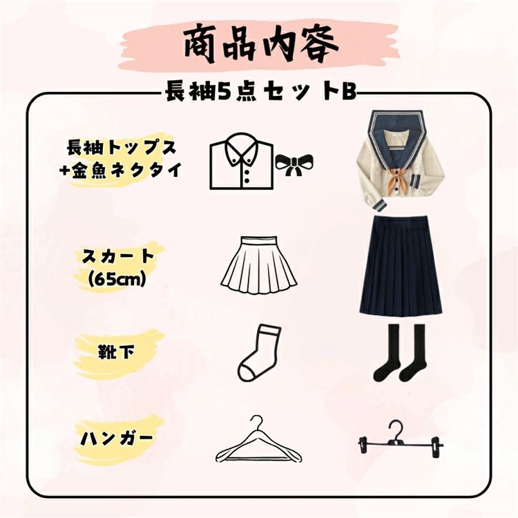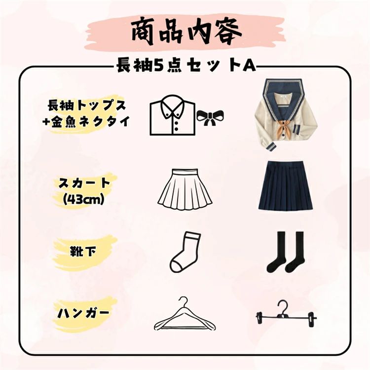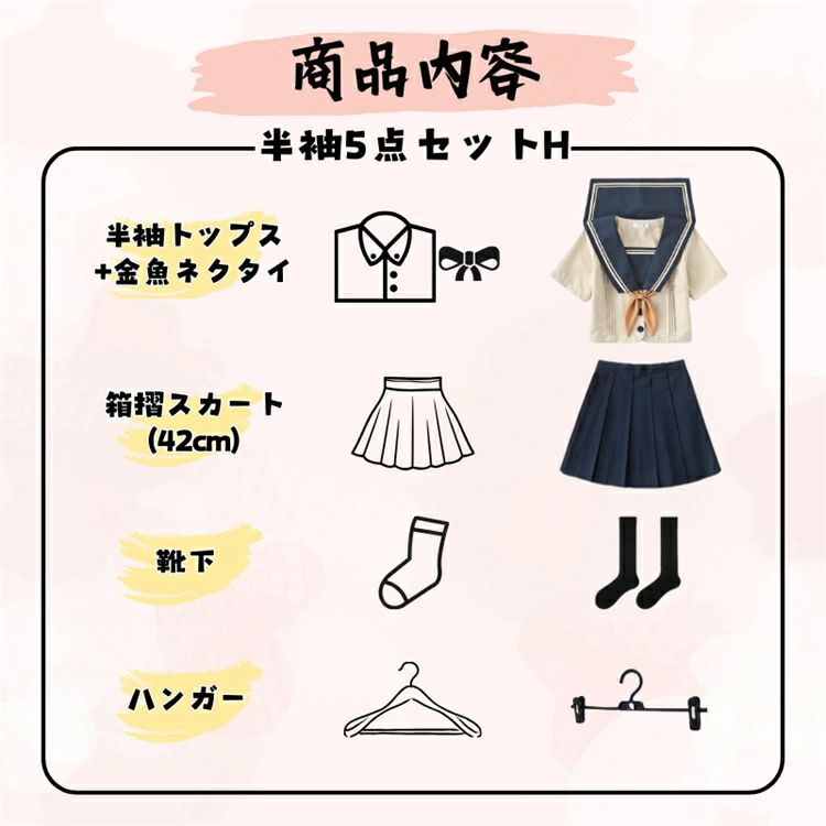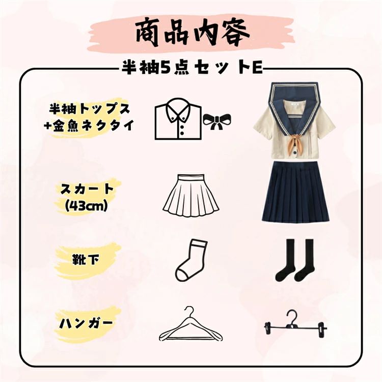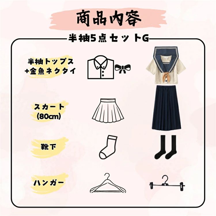 商品内容: 長袖5点セットA 長袖5点セットB 長袖5点セットC 長袖5点セットD 半袖5点セットE 半袖5点セットF 半袖5点セットG 半袖5点セットH