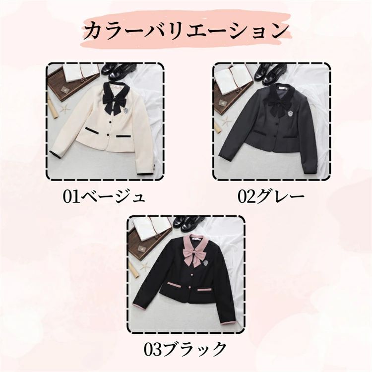 商品内容: 01ベージュ+ワッペン 02グレー+ワッペン 03ブラック+ワッペン 04ベージュ+蝶タイ+ワッペン 05グレー+蝶タイ+ワッペン 06ブラック+蝶タイ+ワッペン 42cmスカート 60cmスカート 70cmスカート
