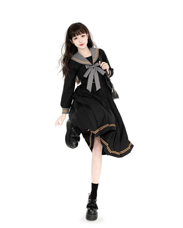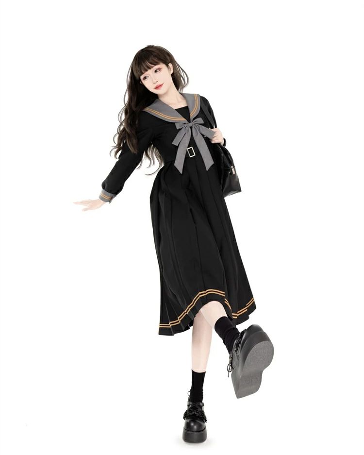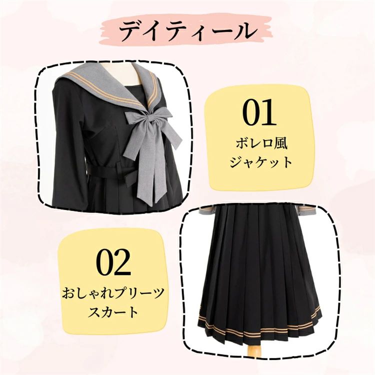 商品内容: 01長袖ワンピース+ベルト+蝶タイ 02半袖ワンピース+ベルト+蝶タイ