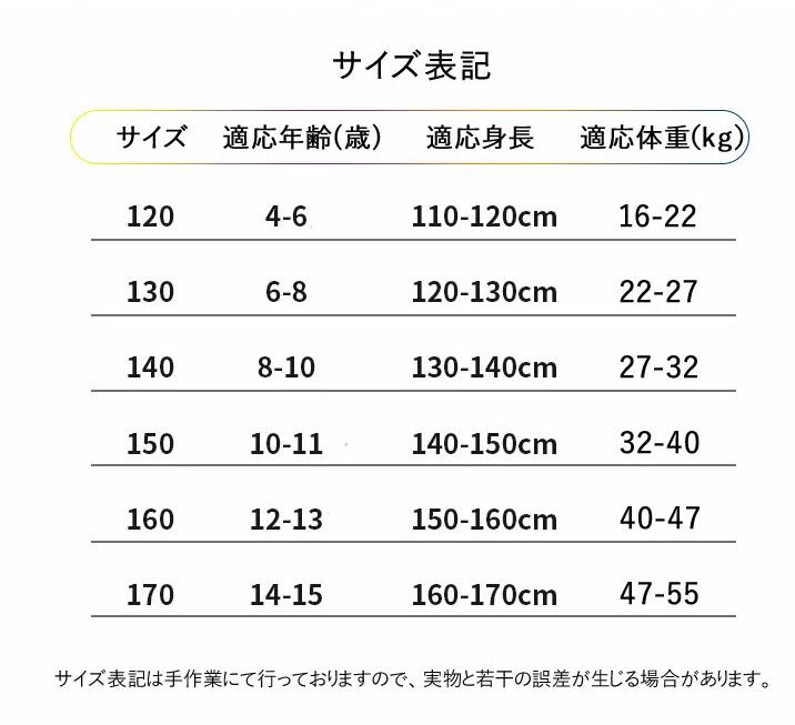 size: 120 130 140 150 160 170