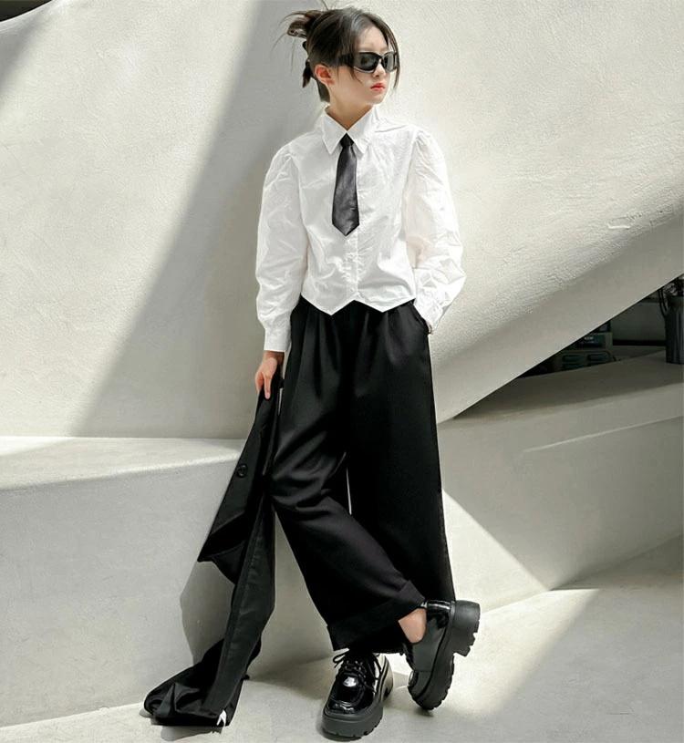 シアースリーブ ドッキングシャツ ボウタイシャツブラウス