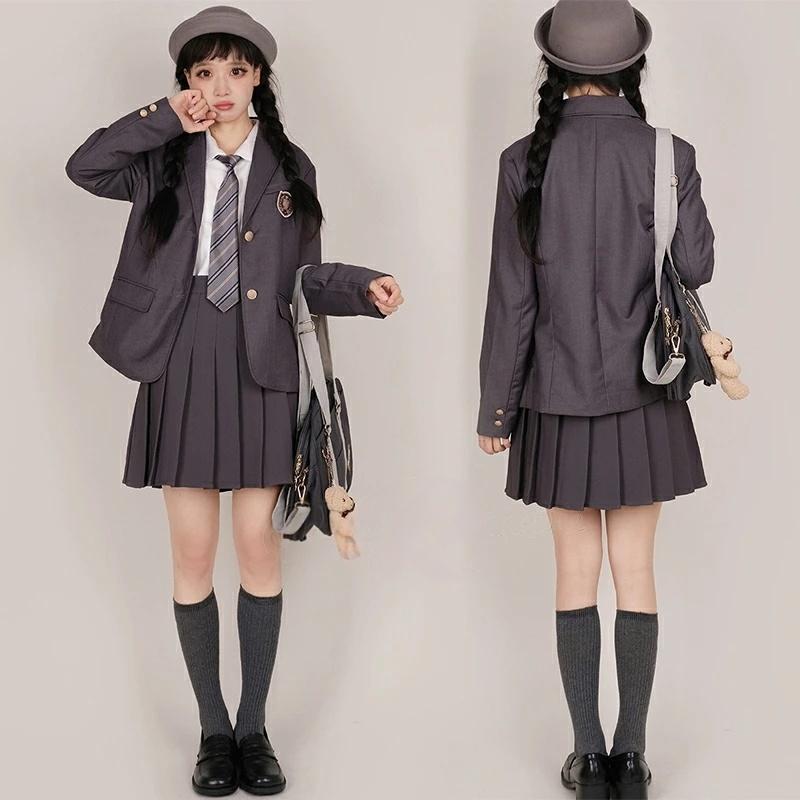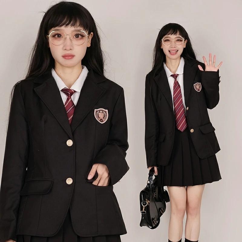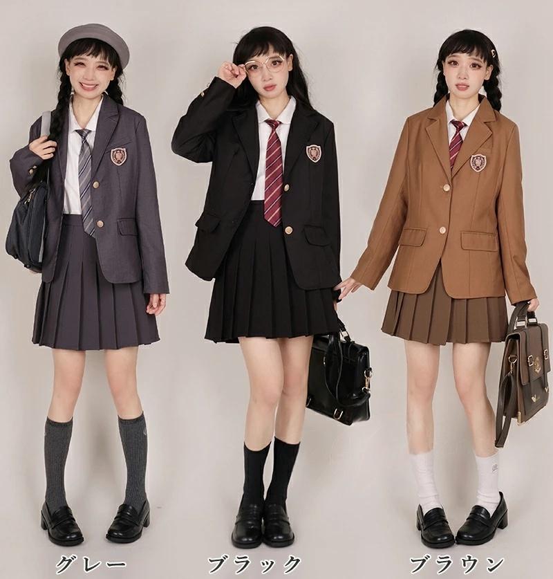 卒業式 スーツ 女の子 卒服 韓国 入学式 スーツ 学生服 韓国 制服 高校生 JK フォーマルスーツ 黒 ブラウン グレー 3色 無地 女子 中学生 3点セット 可愛い ジャケット シャツ スカー
