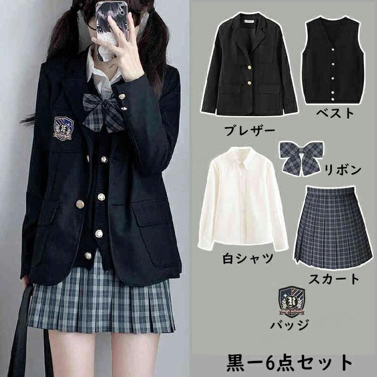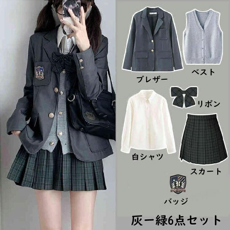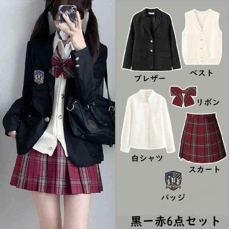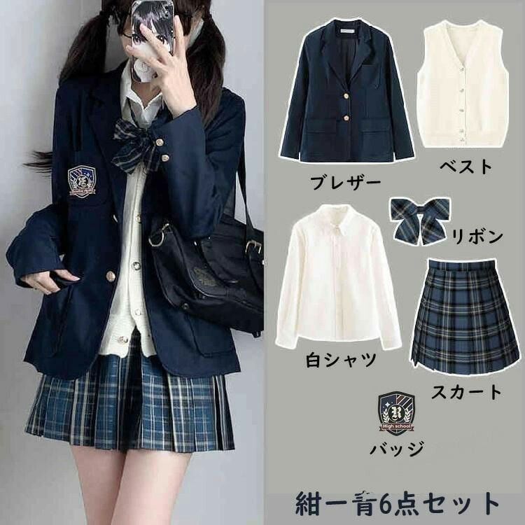 商品内容 6点セット「ブレザー+スカート+シャツ+ニットベスト+ネクタイ+バッジ」