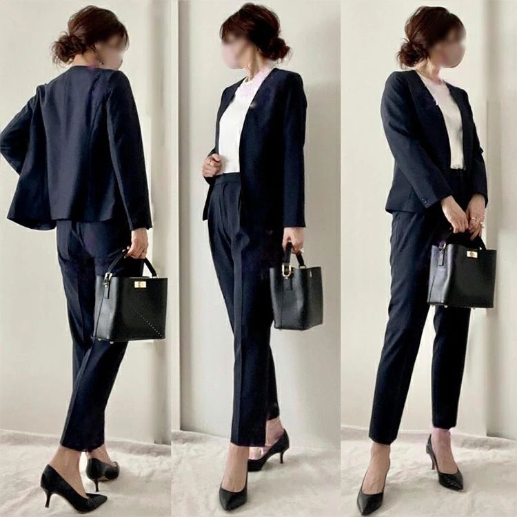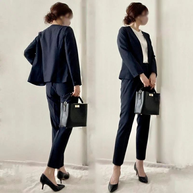 卒業式 スーツ 母 30代 スーツ レディース セット 2点セット ネイビー 入学式 ママスーツ 40代 母親 着回し きれいめ ノーカラー フォーマル パンツスーツ 洗える パンツスーツ 体型