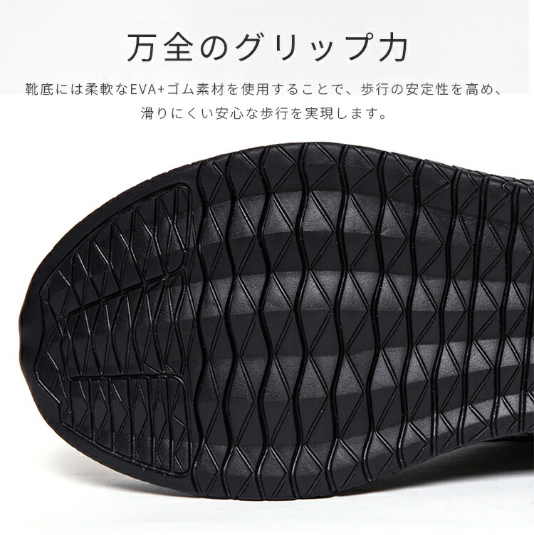 靴底には柔軟なEVA+ゴム素材を使用することで、歩行の安定性を高め、滑りにくい安心な歩行を実現します。