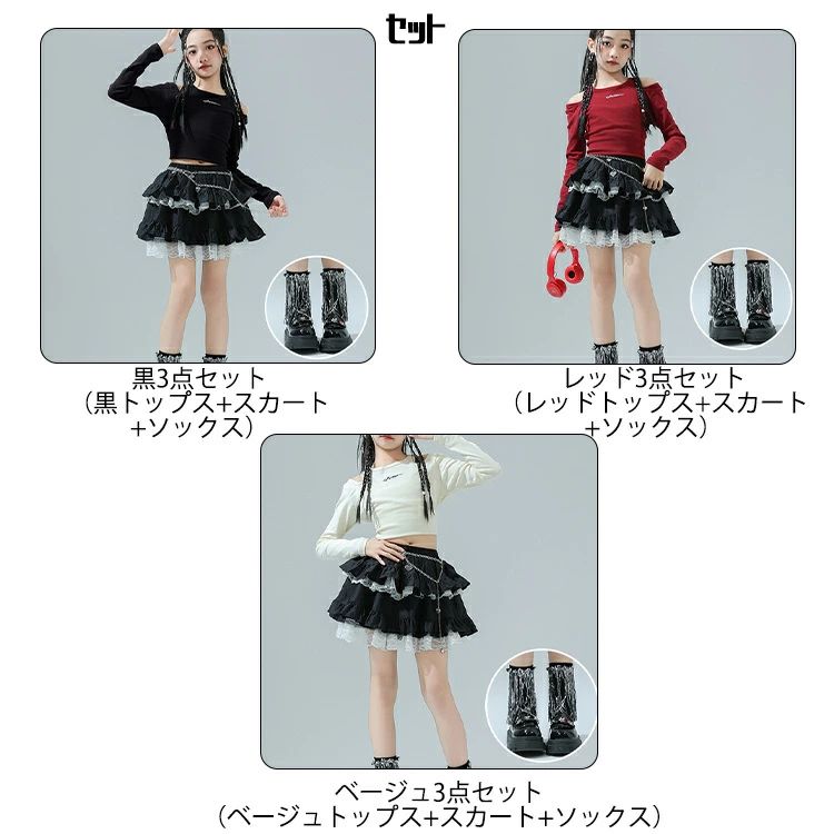 商品内容: レッドトップス ベージュトップス 黒色トップス スカート ベージュトップス+スカート 黒色トップス+スカート レッドトップス+スカート ベージュトップス3点セット レッドトップス3点セット 黒色トップス3点セット