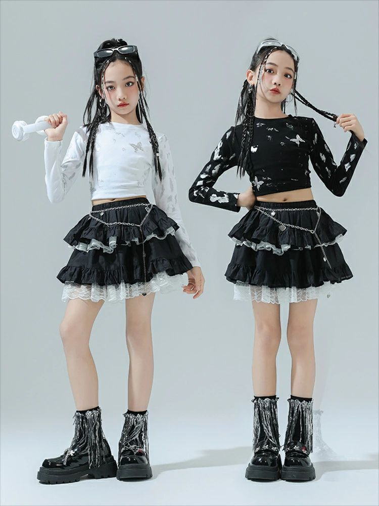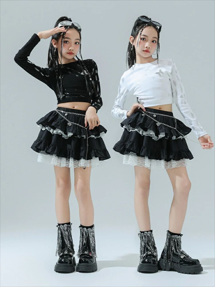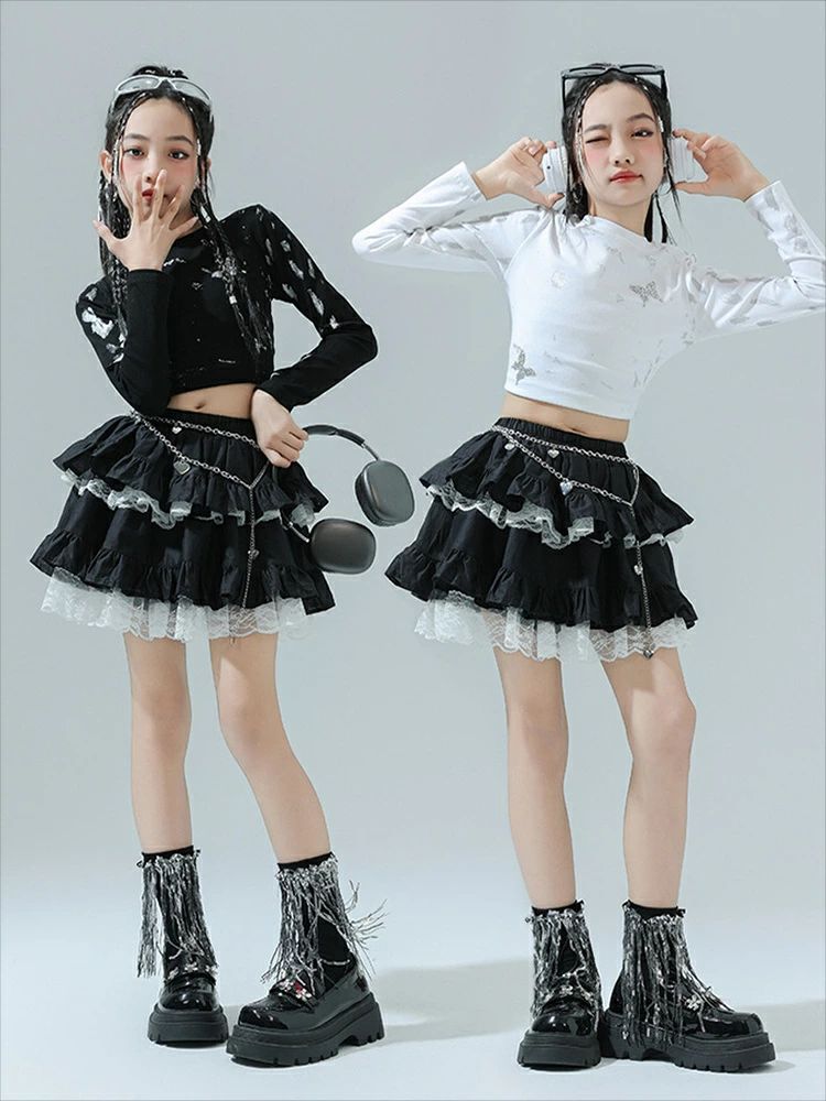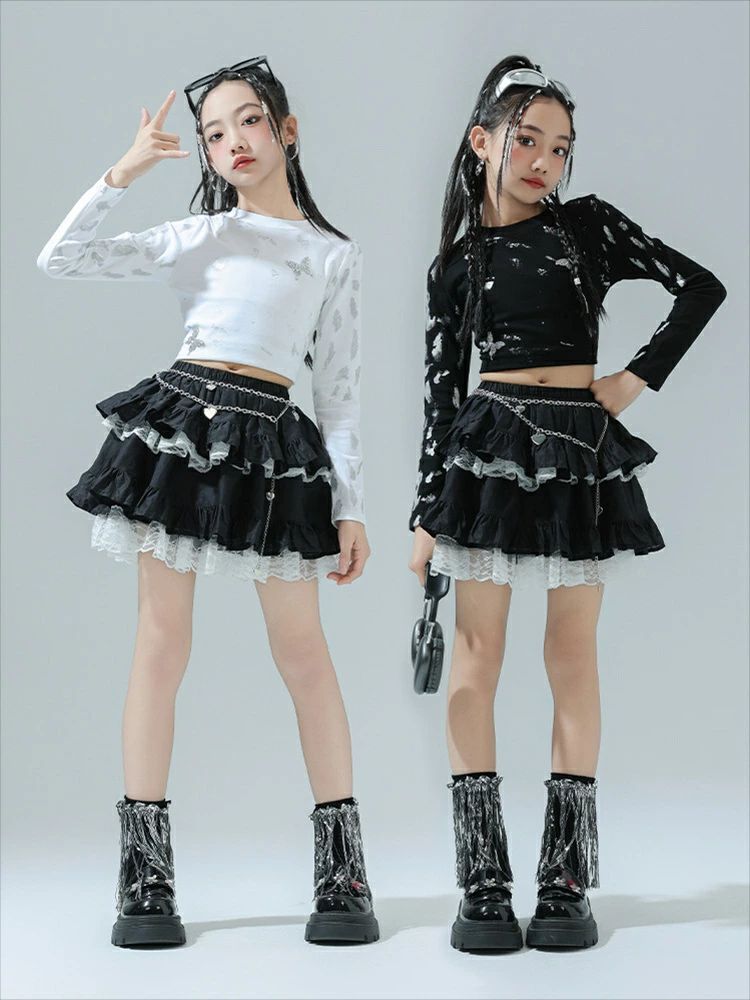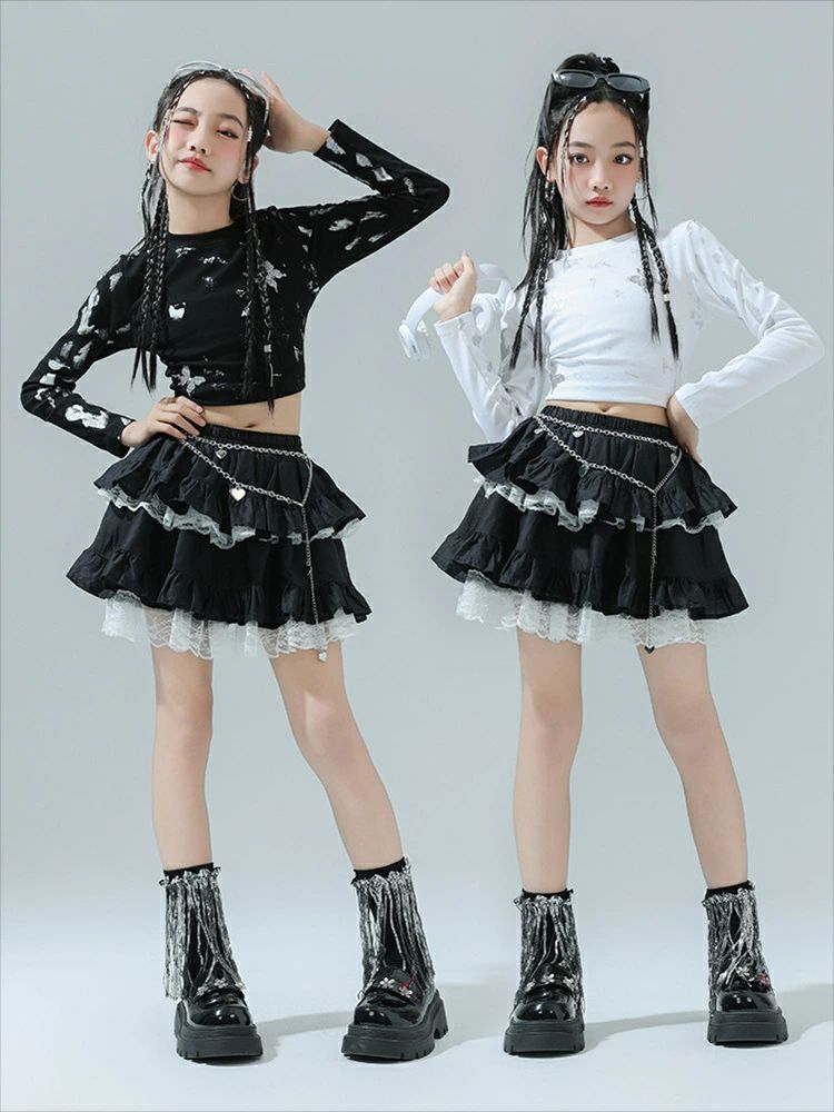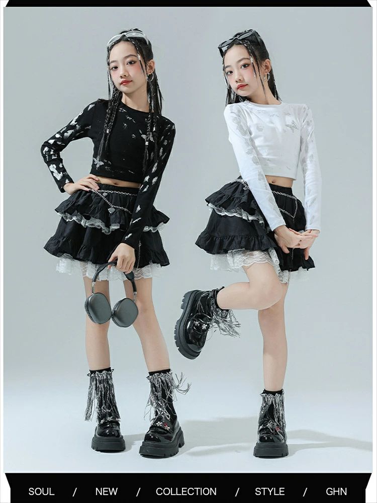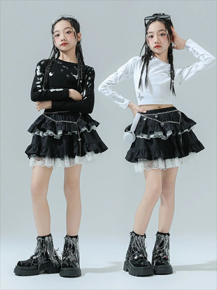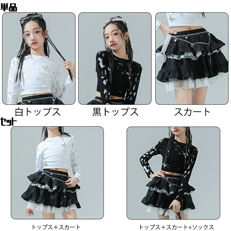 商品内容: 白トップス 黒トップス スカート 白トップス+スカート 黒色トップス+スカート 白トップス+スカート+ソックス 黒色トップス+スカート+ソックス