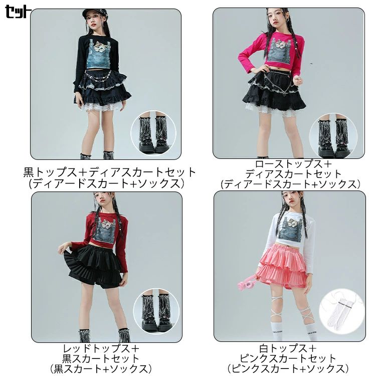 商品内容: 白トップス ローストップス レッドトップス 黒トップス ティアードスカート 黒スカート ピンクスカート 黒トップス+ティアスカート ローストップス+ティアスカート レッドトップス+黒スカート 黒トップス+ピンクスカート 黒トップス+ティアスカートセット ローストップ+ティスカートセット レッドトップス+黒スカートセット 黒トップス+ピンクスカートセット