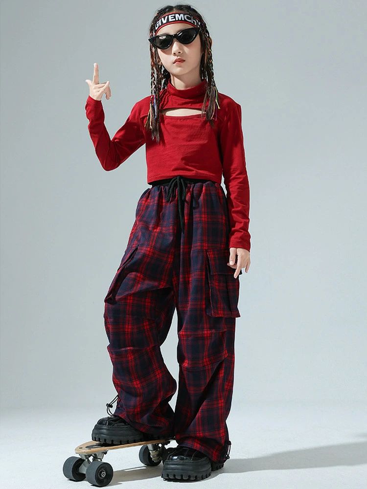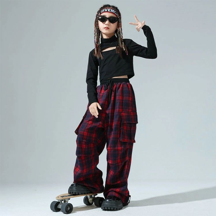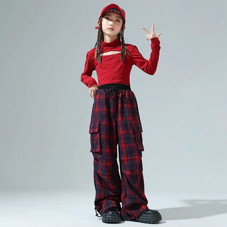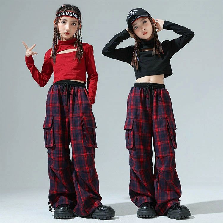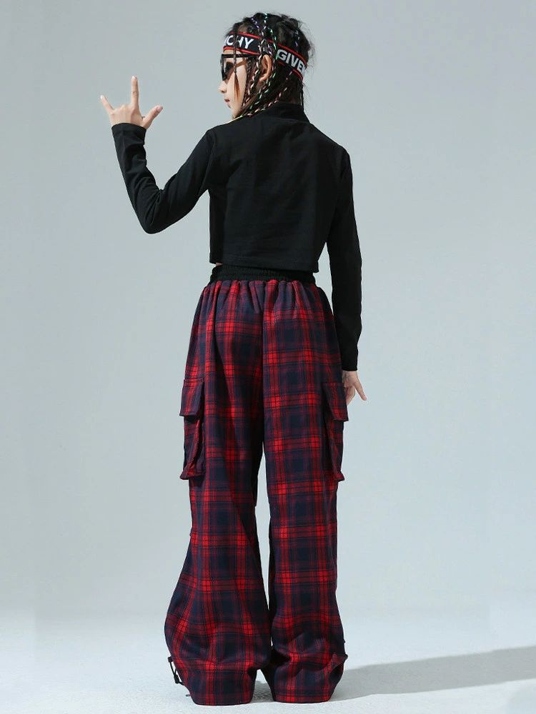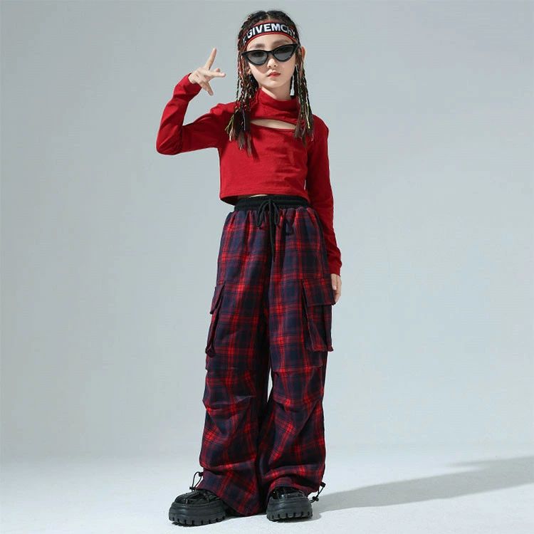 キッズ ダンス衣装 長袖 黒 赤 トッ