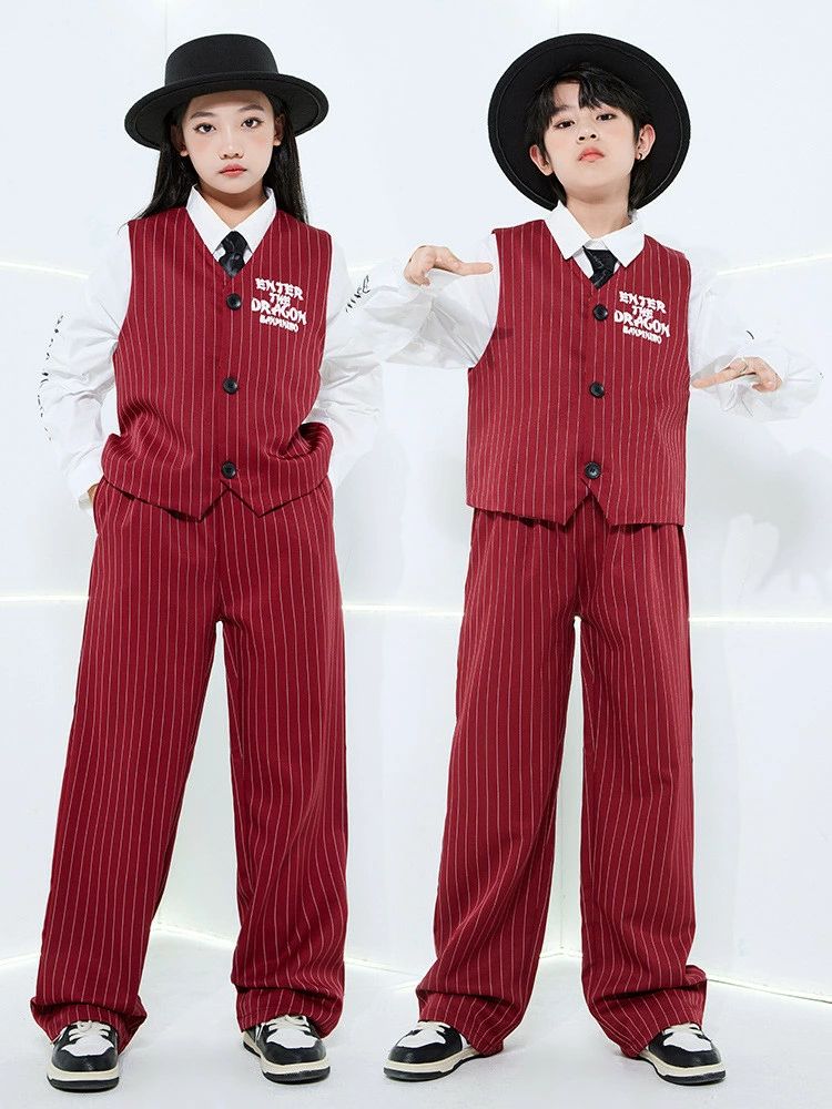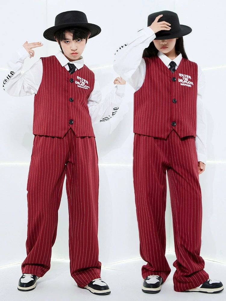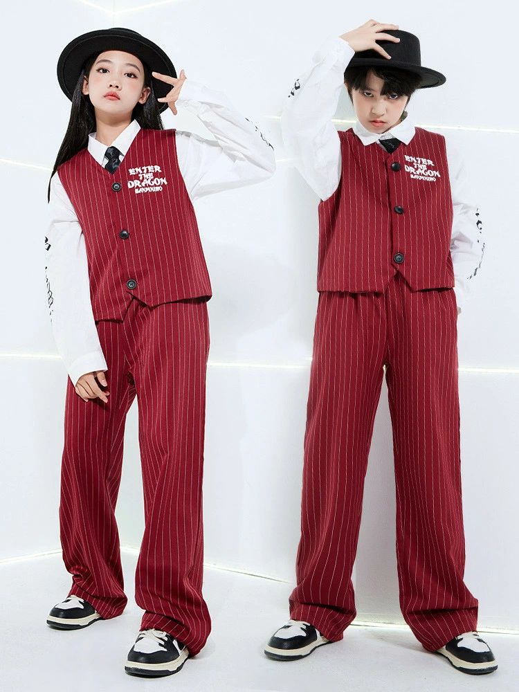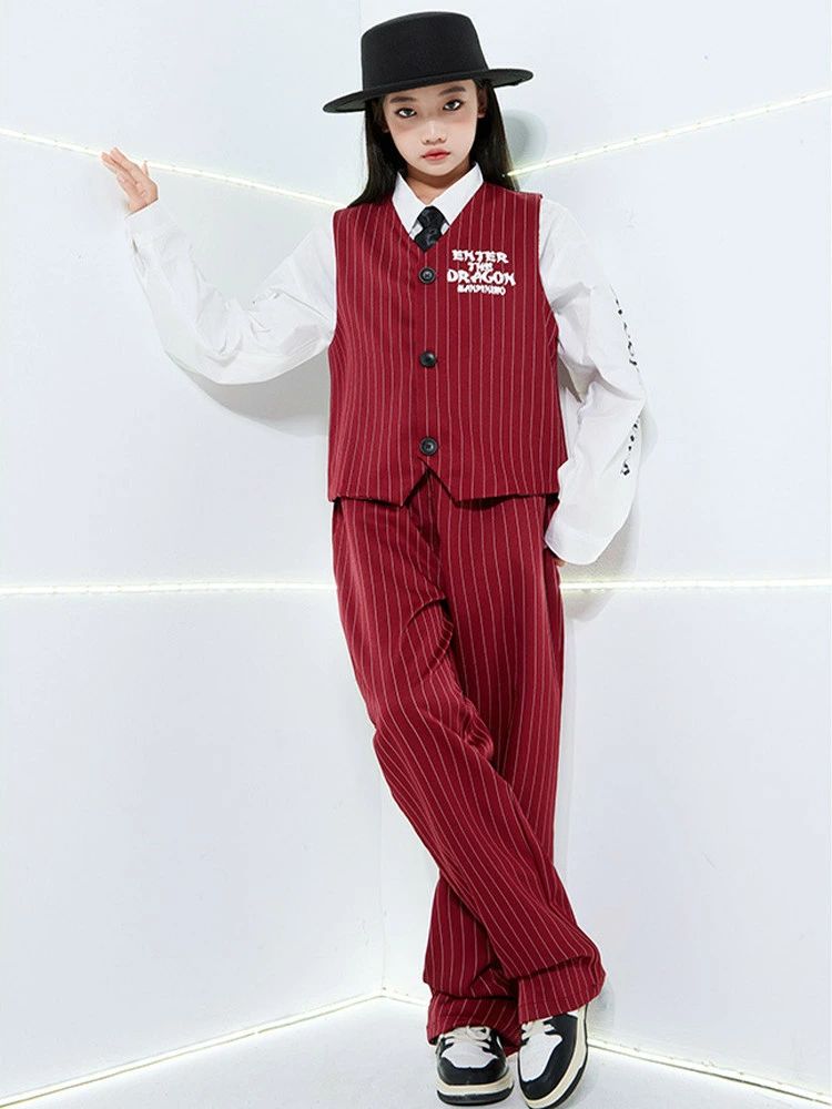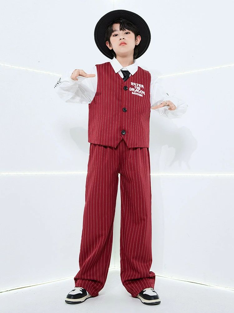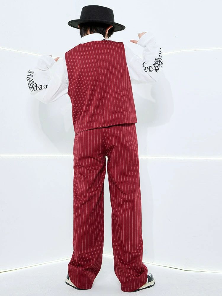 ワインレッド ベスト パンツ 白シャツ