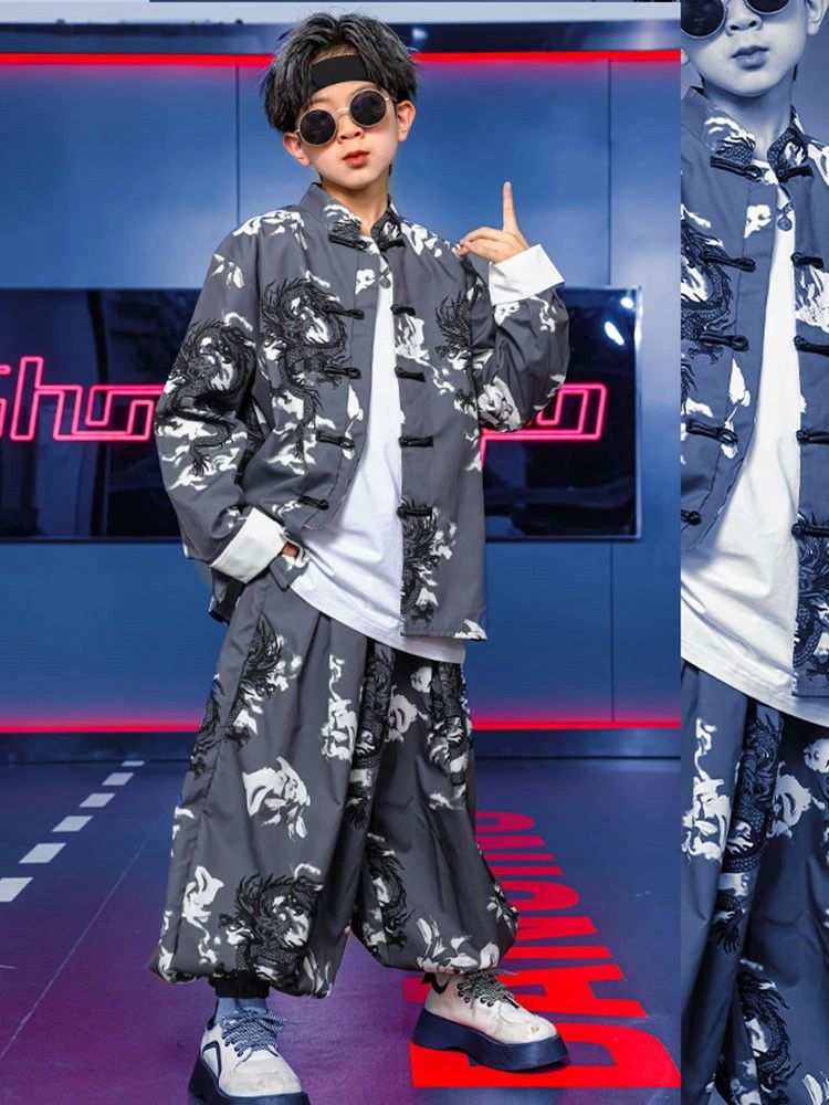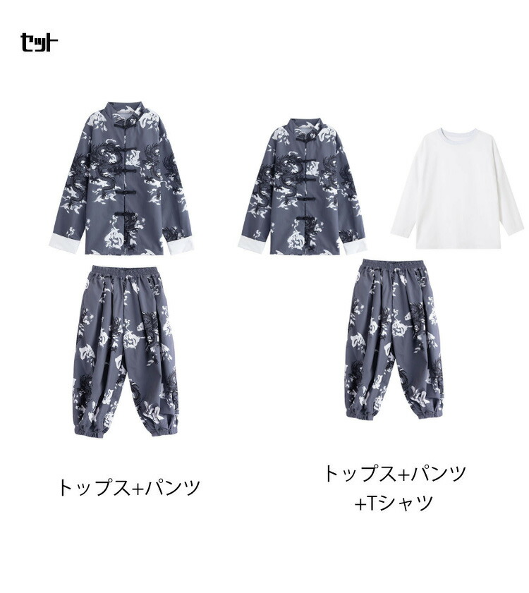 唐装 グレー トップス カジュアルパン
