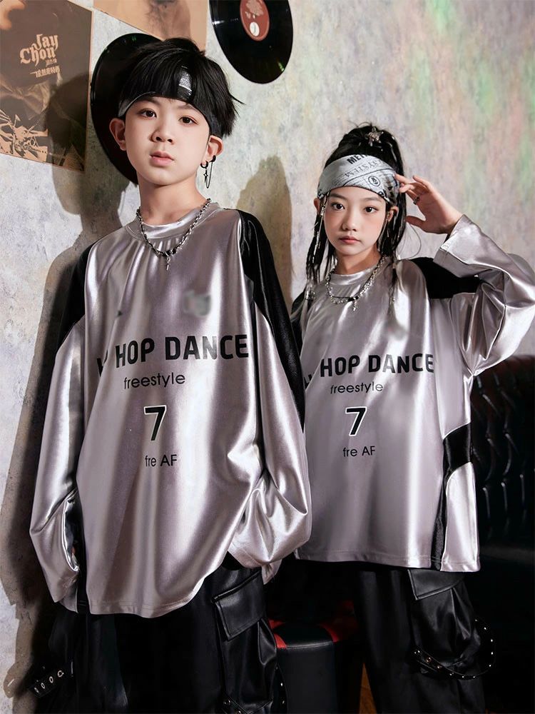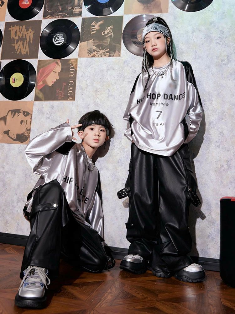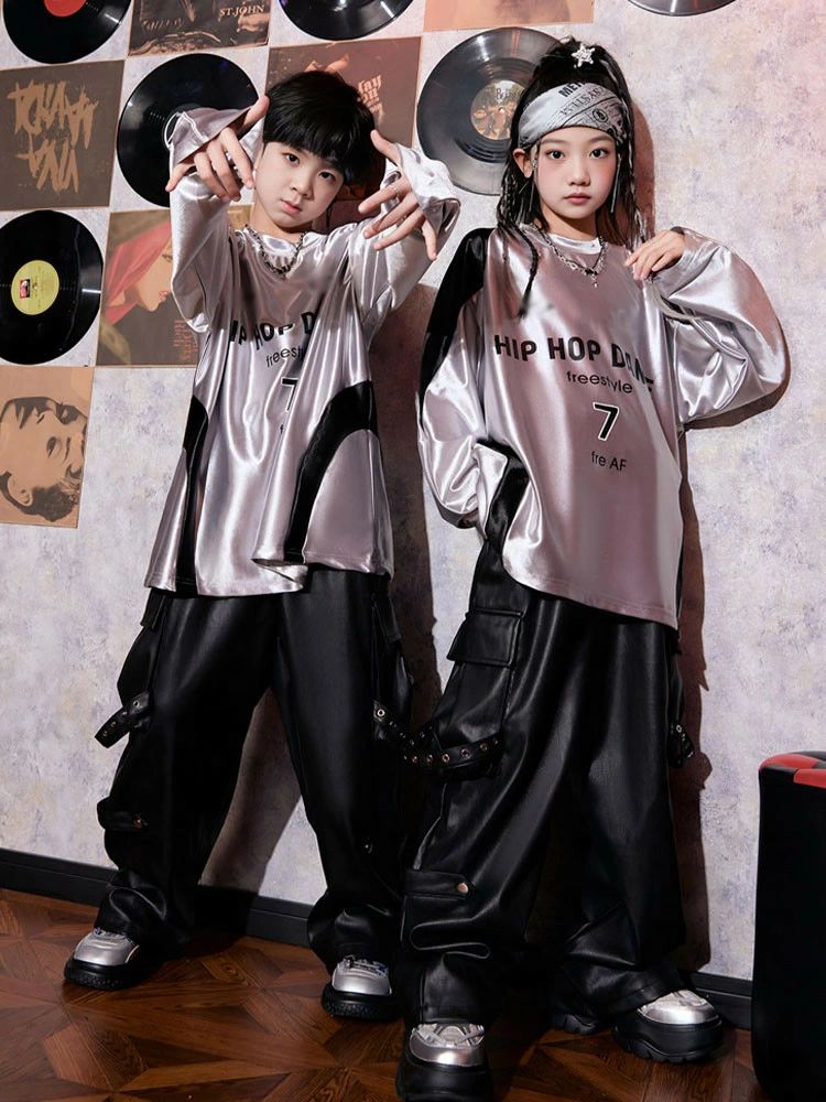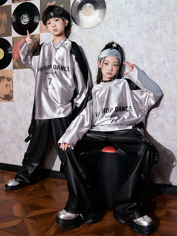 シルバー 長袖 トップス 黒 レザーパ