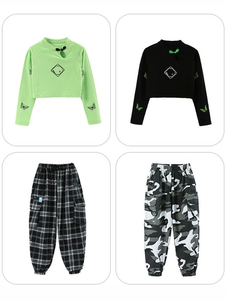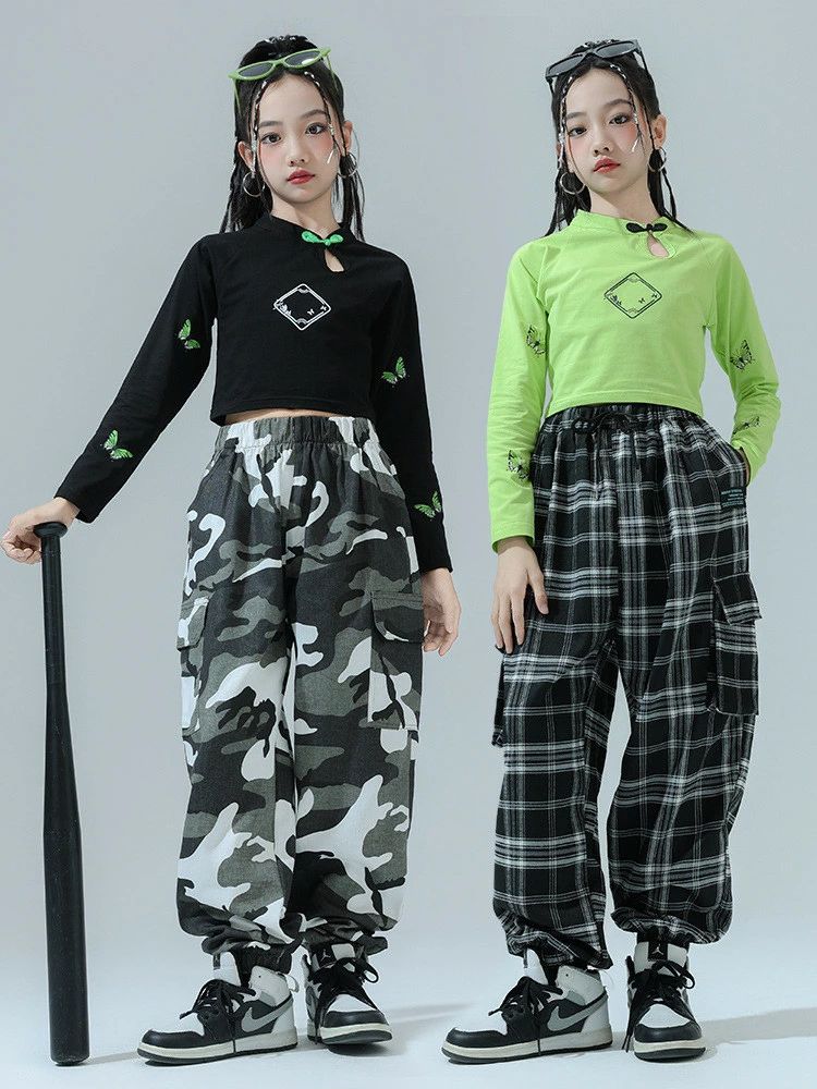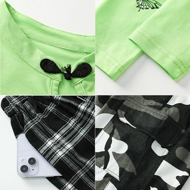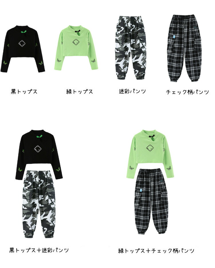 商品内容: 黒トップス 緑トップス 迷彩パンツ チェック柄パンツ 黒トップス+迷彩パンツ 緑トップス+チェック柄パンツ