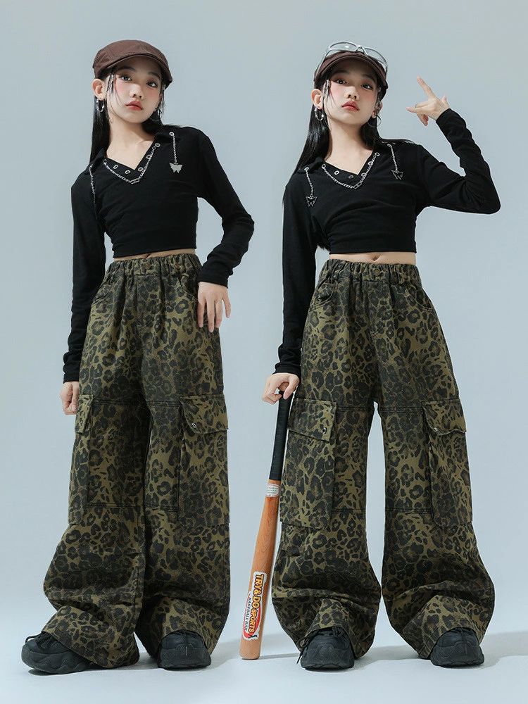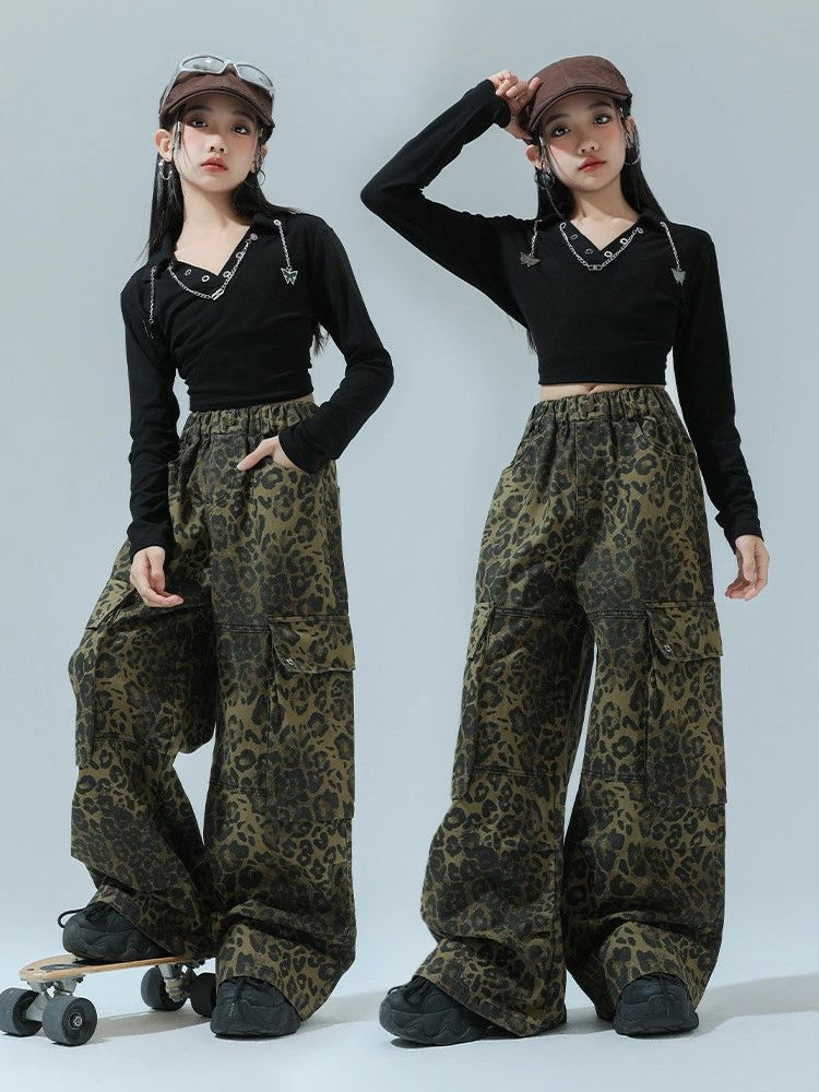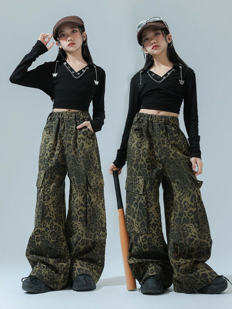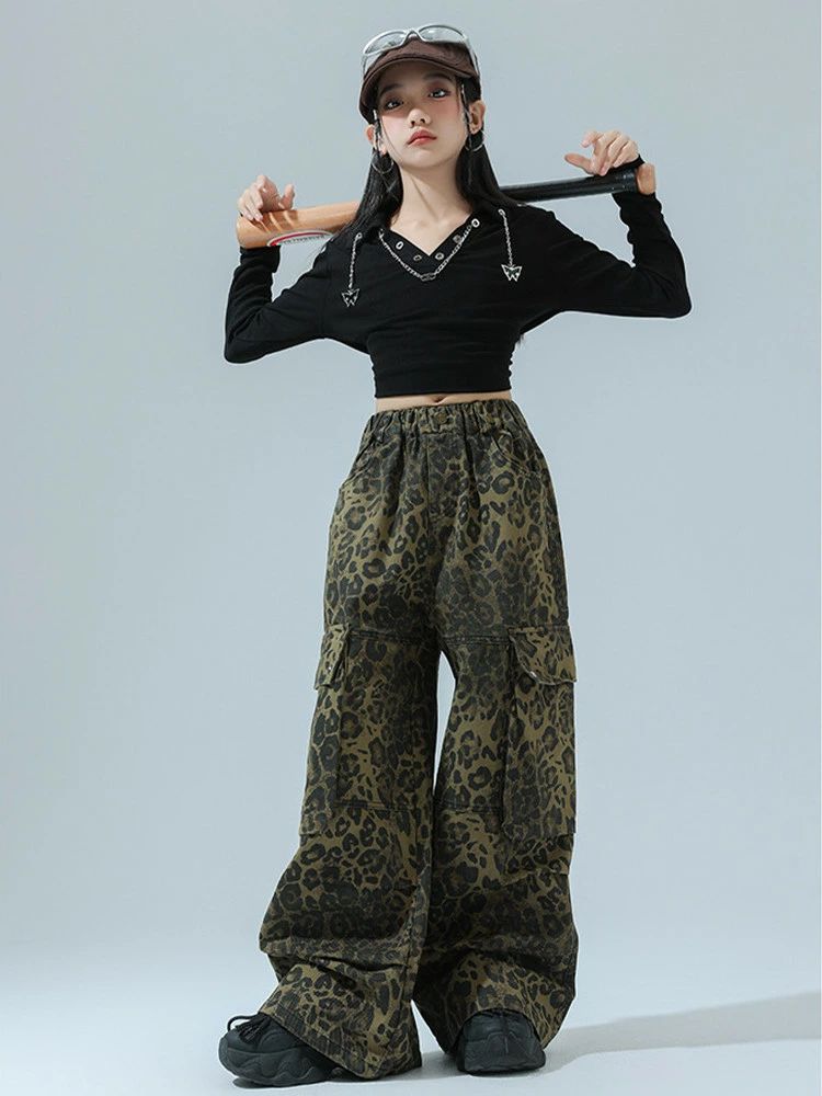 レオパード柄 ヒョウ柄パンツ 黒 Vネ