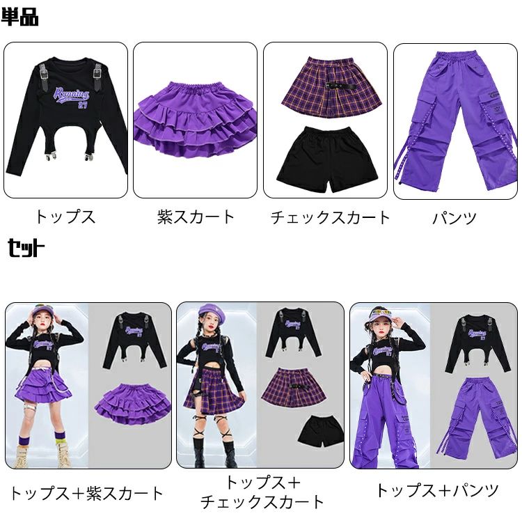 商品内容: トップス 紫スカート チェックスカート パンツ トップス+紫スカート トップス+チェックスカート トップス+パンツ
