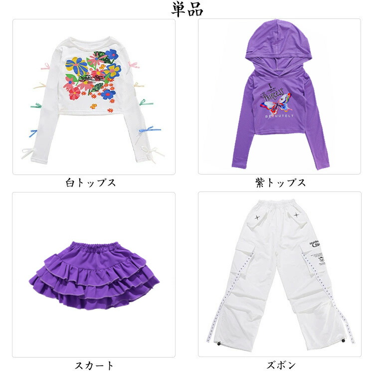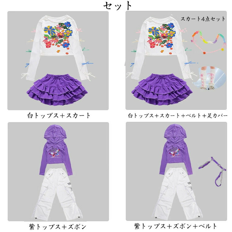 商品内容: 白トップス 紫トップス スカート ズボン 白トップス+スカート スカート4点セット 紫トップス+ズボン 紫トップス+ズボン+ベルト