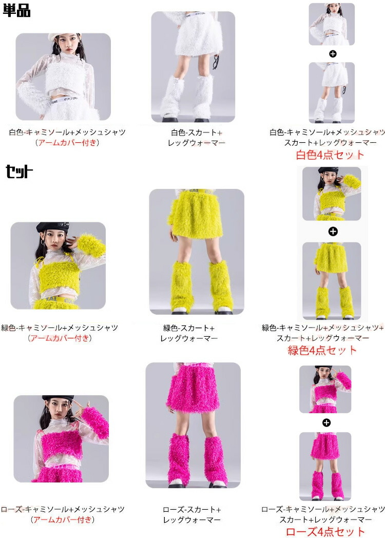 商品内容: キャミソール+メッシュシャツ スカート+レッグウォーマー 4点セット