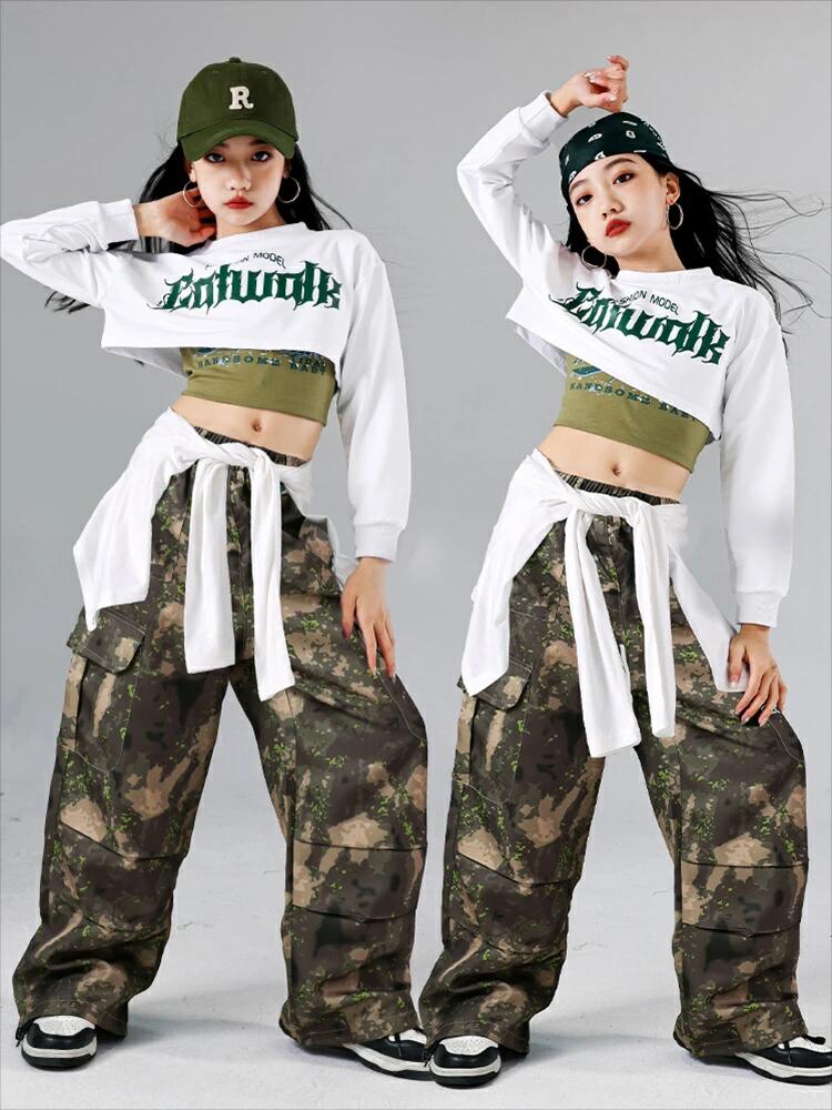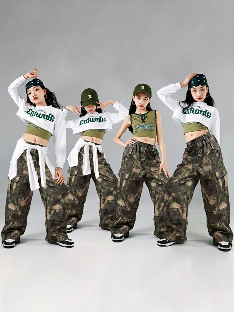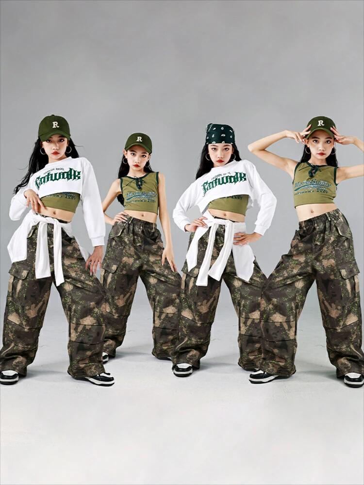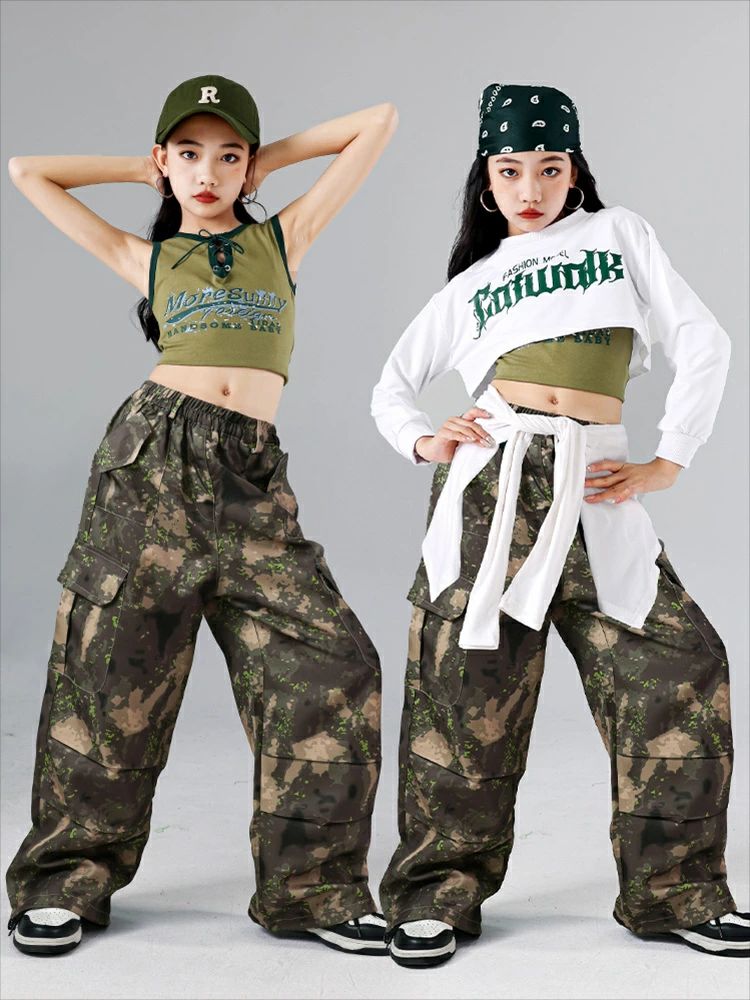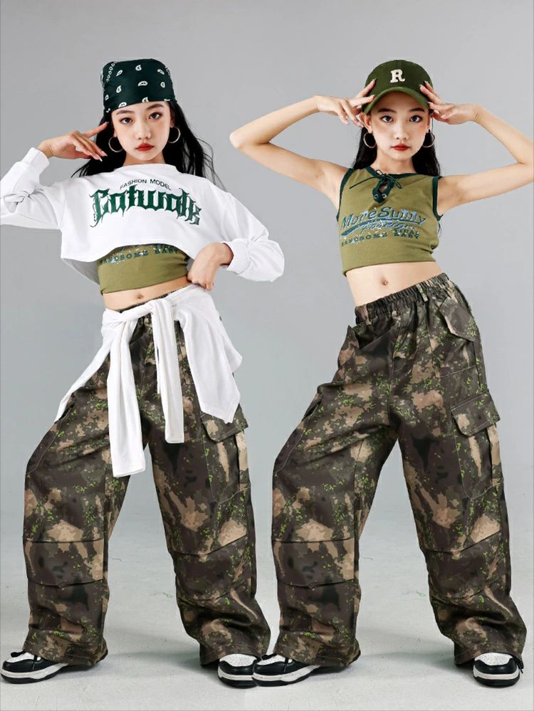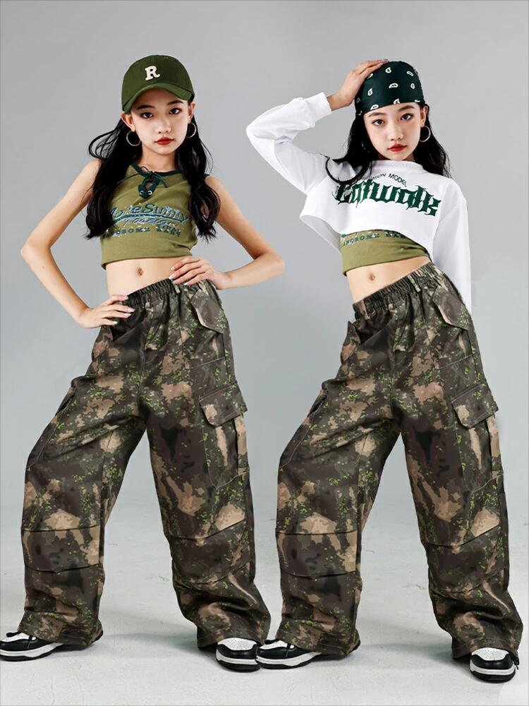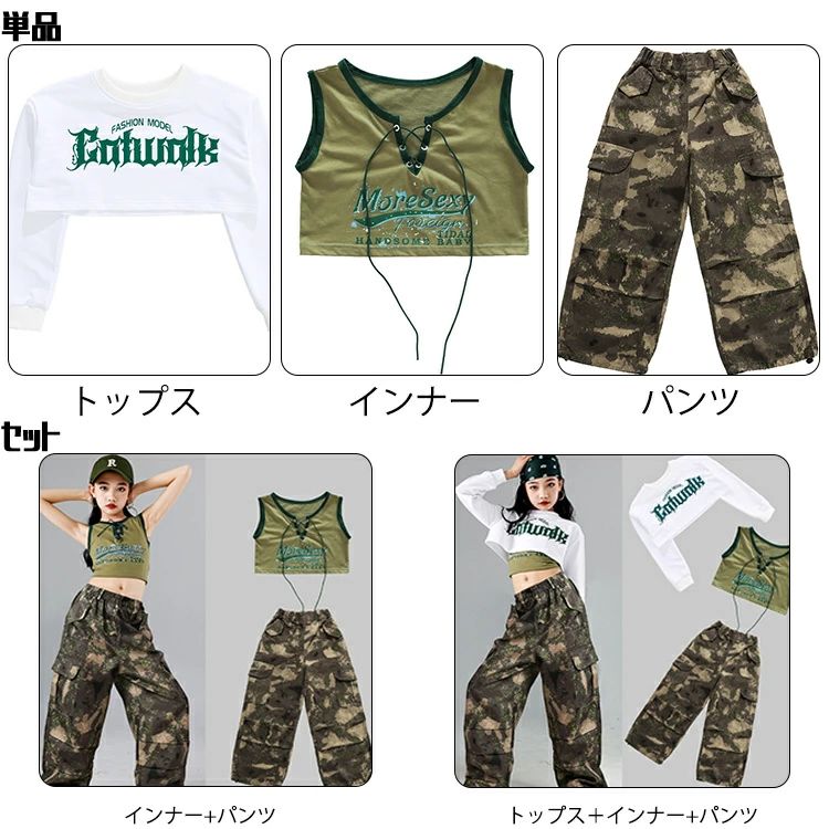 緑 白 迷彩柄 へそ出し キッズ ダン