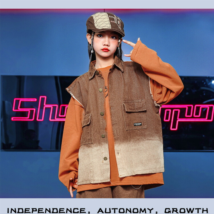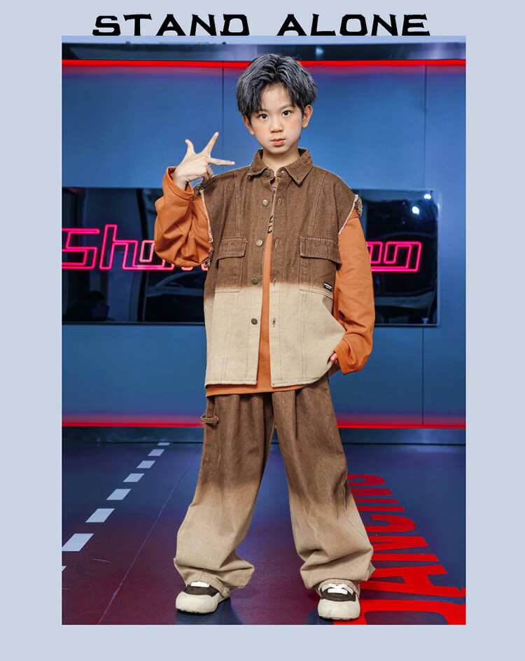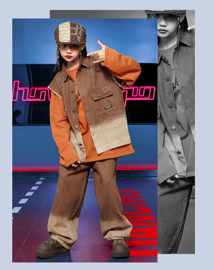 デニム ブラウン キッズ ダンス衣装