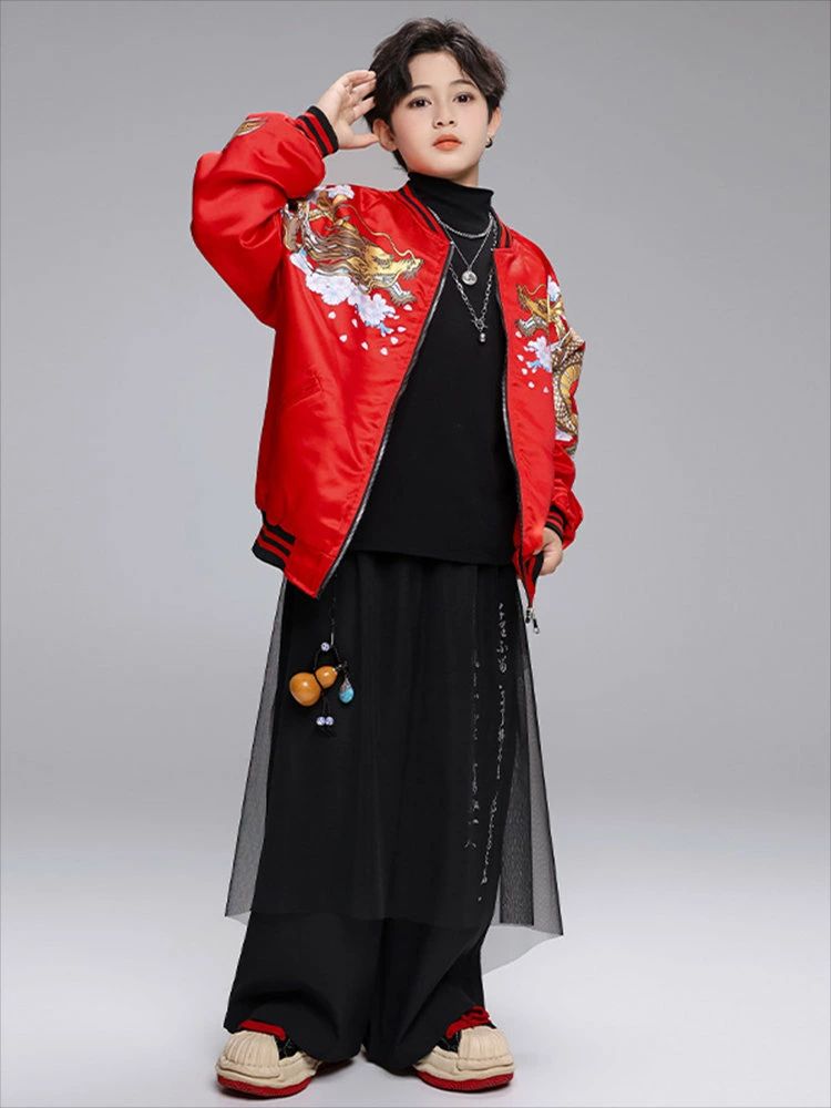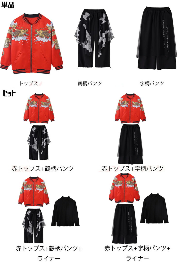 商品内容: 赤ベースボールシャツのみ 鶴柄パンツのみ 字柄パンツのみ 赤トップス+鶴柄パンツ 赤トップス+字柄パンツ 赤トップス+鶴柄パンツ+黒ライナー 赤トップス+字柄パンツ+黒ライナー