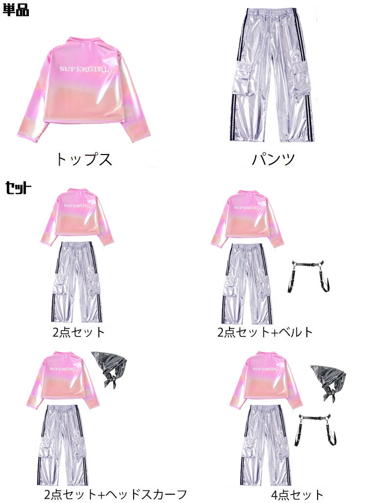 商品内容: トップスのみ シルバーカーゴパンツのみ 2点セット 2点セット+ヘッドスカーフ 2点セット+ベルト 4点セット