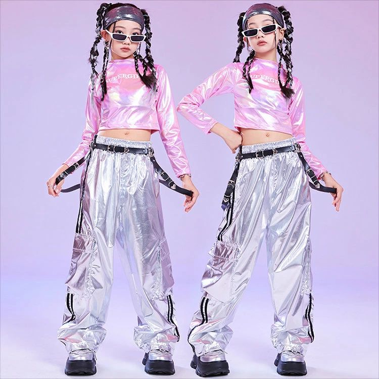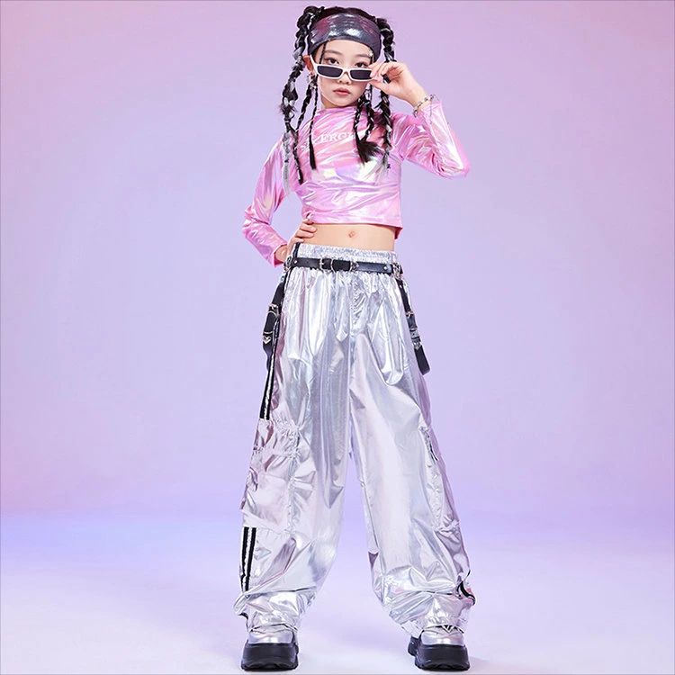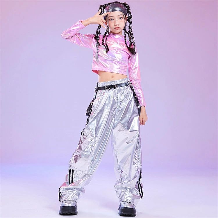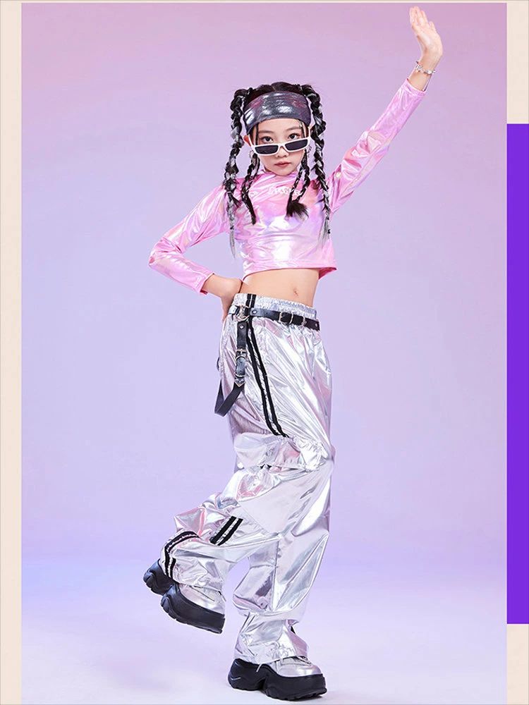 ピンク 反射柄 キッズ ダンス衣装 セ