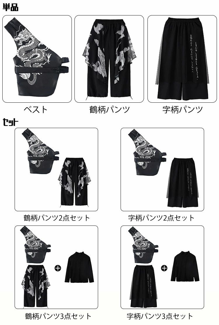 商品内容: 竜柄革ベストのみ 鶴柄パンツのみ 字柄パンツのみ 鶴柄パンツ2点セット 字柄パンツ2点セット 鶴柄パンツ3点セット 字柄パンツ3点セット
