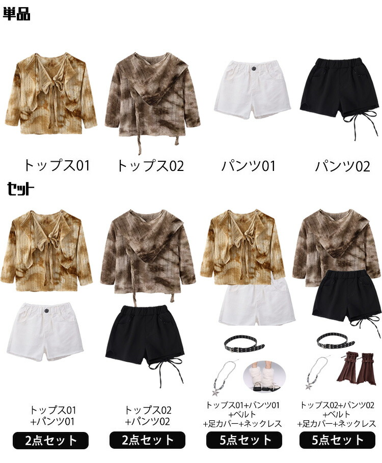 商品内容: トップス01 トップス02 パンツ01 パンツ02 トップス01+パンツ01 トップス02+パンツ02 トップス01 (5点セット) トップス02 (5点セット)