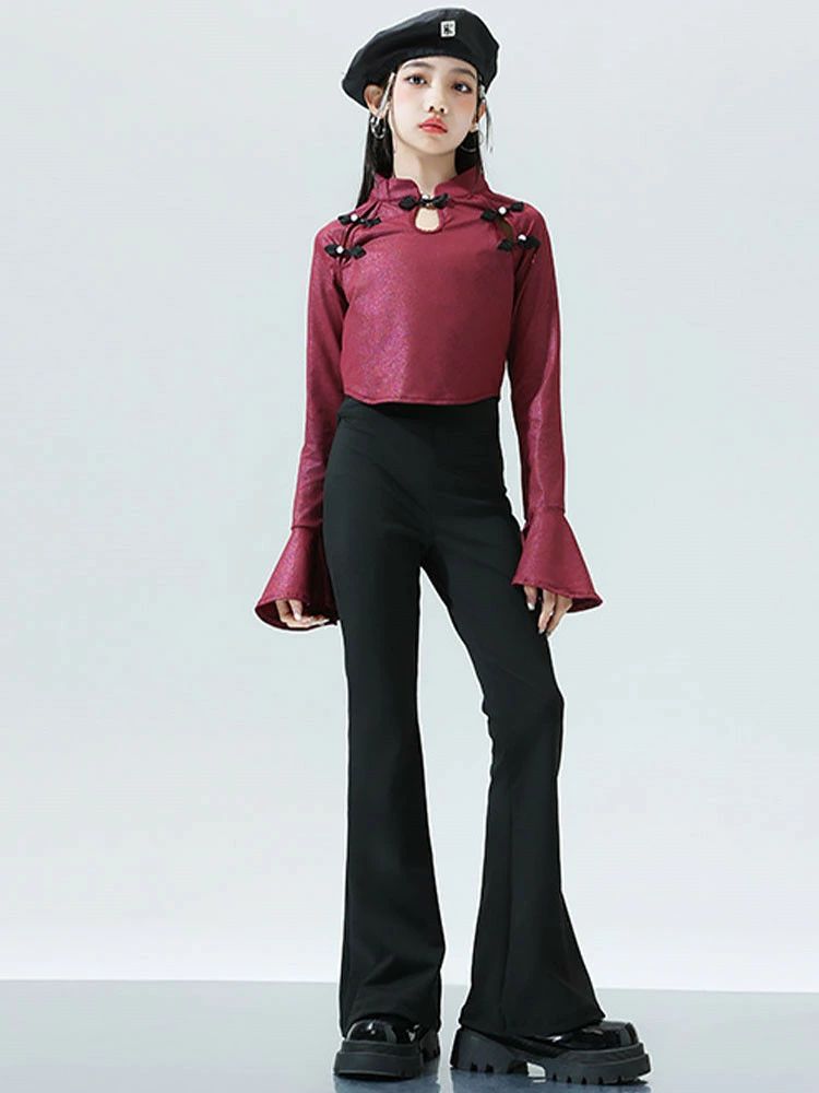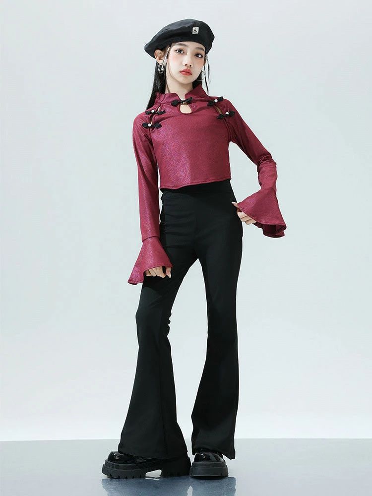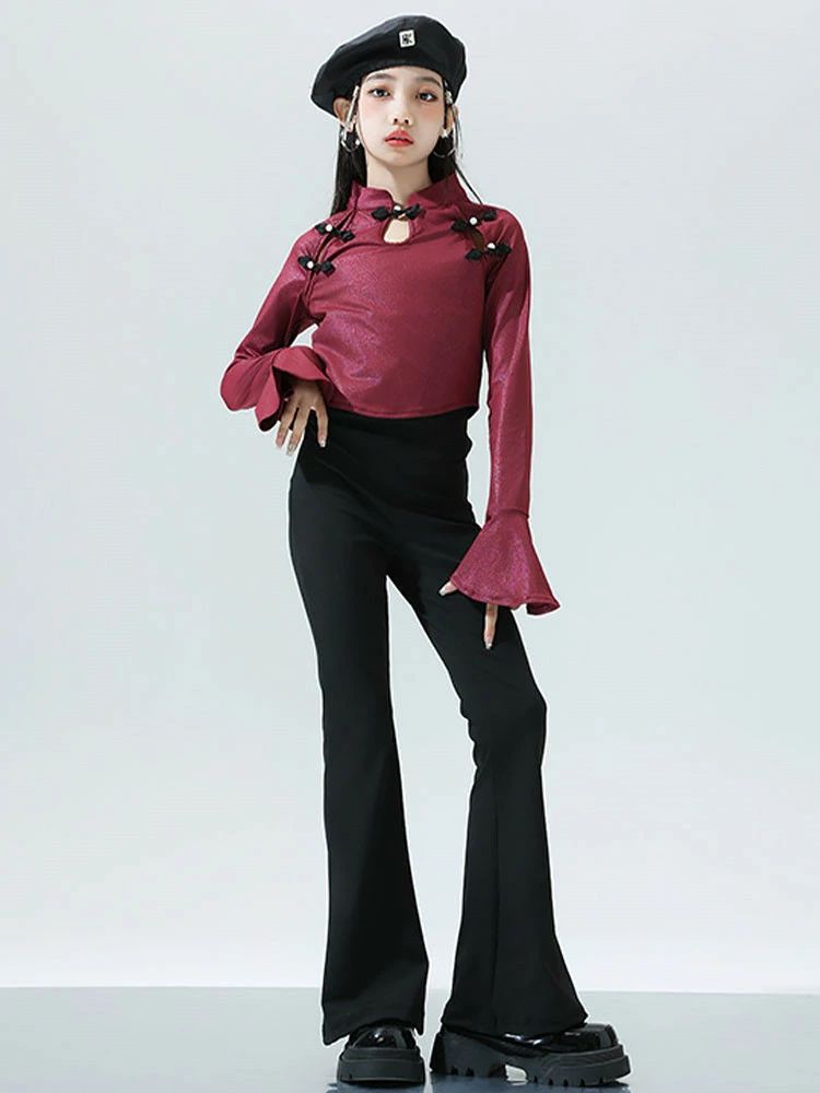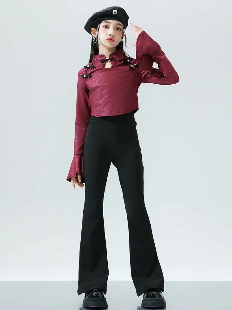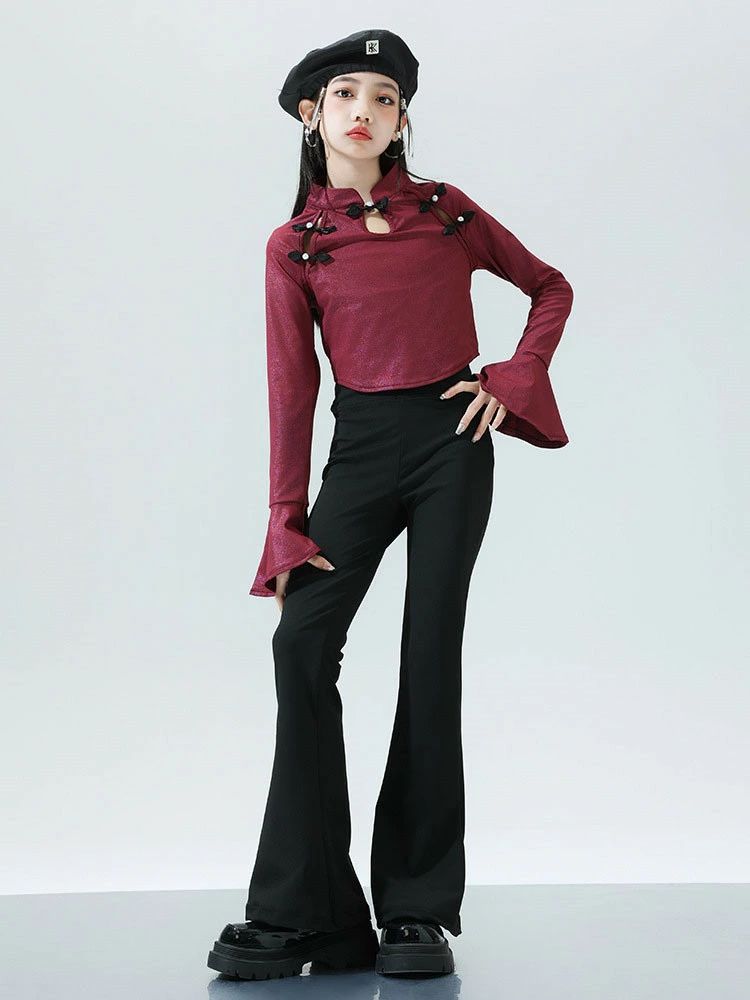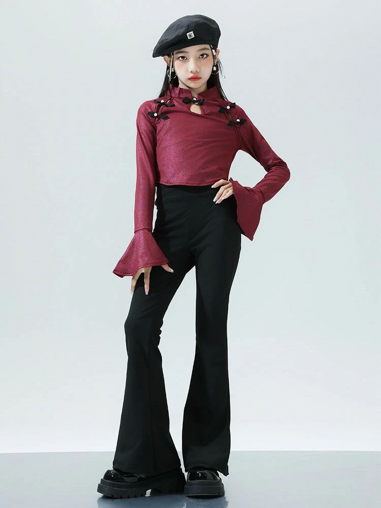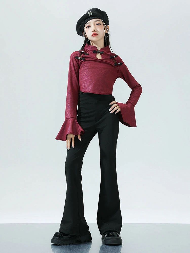 ワインレッド トップス ブラック ベル