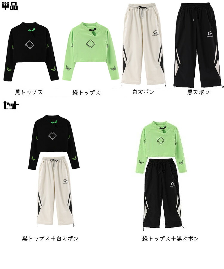 商品内容: 黒トップス 緑トップス 白ズボン 黒ズボン 黒トップス+白ズボン 緑トップス+黒ズボン