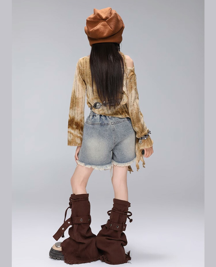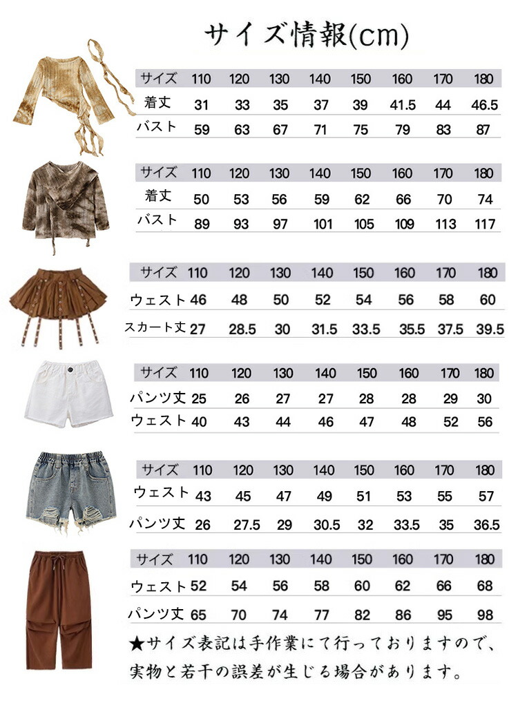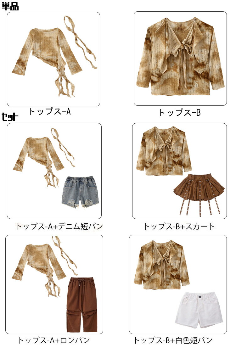 商品内容: トップス-Aのみ トップス-Bのみ トップス-A+デニム短パン トップス-B+スカート トップス-A+ロングパンツ トップス-B+白色短パン